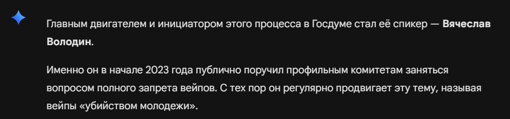Чувак который называет вейпы - "убийцами молодёжи" внёс законопроект который сделал их ещё более опасными. Я не особо в курсе кто он, знаю только фразу "володин долбит нормально", но считаю теперь его просто глупым вредителем.