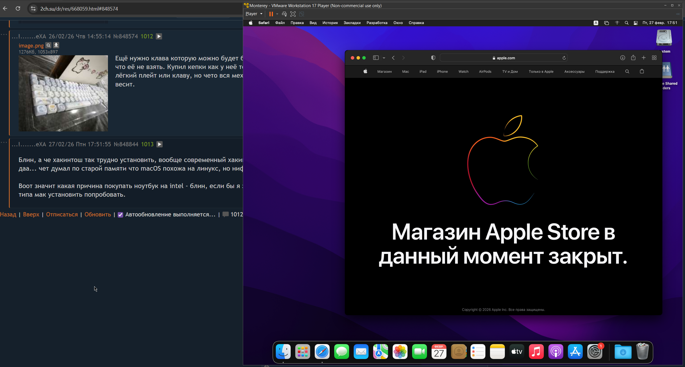 Но на виртуалку можно, кстати на виртуалку ставится только старая ОС - которую очень неприятная, везде мелкий шрифт. Ну блин, ну блин, ну пук пук пук. Как сказал Стив Балмер - "С Джонни Айвом говно жрать хорошо, вам меньше достанется". Хорошо что он умер и я посмотрел на ютубе macOS уже шрифт более крупный и читаемый, то есть движется в правильном направлении, ну это конечно вкусовщина, но только не в тех моментах когда промахиваешься по маленькие контролам или с трудом читаешь.