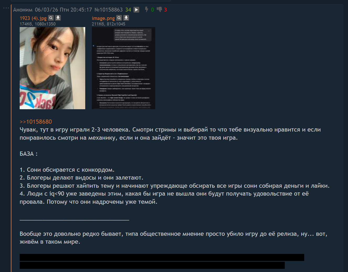 Кхех, опять трипкод потерял и случайно его в тест разделе скинул, ну и хуй бы с ним, кто там ползает. Ммм а вы знали что на мониторах 1920x1080 имеет смысл включать видео в 4k? Чет постоянно забываю, на самом деле картинка намного лучше становится, особенно в динамике.