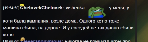 Что до степашки, то извини, старик. Ты заслужил хотя бы пары скриншотов в треде с твоей шизой, просто чтобы помнили, что был такой, но я не успел. Когда озверевший режим ищет, в кого бы вонзить свои зубы, страдают мирные люди. Не первая и не последняя жертва, но она лишь доказывает, что мое дело правое. Я бы очень хотел выйти и как Тони Старк раскрыть свою истинную личину, но не могу. #незабудемнепростим Предлагаю всем тивачерам найти на беттер тв эмоут морковки и запостить ее в честь степашки в чат.