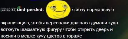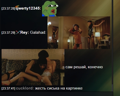 Какое ламповое место? Когда так было? Кровавая моль Галахад мстит Ракете за то, что тот агитировал за фильм не запрещенный в РФ, удаляет его стикеры, а потом банит его друзей за то, что посмели эти стикеры перепостить. Другой админ кинул бы в Блек лист фильм или просто не дал бы его ставить, а задним числом мстит только зашуганная моль, кухаркин сын, которого в школке обижали. А вчера я узнал из чата, что он забанил еще и Степана, блядь. За что? Я хз, наверно опять из-за меня. Он небось думает, что я не могу сидеть под другим акком или вообще анонимно и делать эти скриншоты. И на пике этот пожиратель гороха (анусом) говорит, что слишком он добрый. ЗАБАНИЛ, СУКА, ПО БЕСПРЕДЕЛУ, ТУПО НИ ЗА ЧТО - НО СЛИШКОМ ДОБРЫЙ, ВЕДЬ РАЗБАНИЛ ЖЕ. Пиздец.