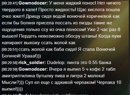3 и 4 - традиционный летний марафон ВК был ознаменован присутствием таких видных тивачеров в чате снидача, как пидрила и мелкаш (доктор-пупкин ушел спать раньше), поскольку тивач опять лежит. Мелкаш писал в чат по-русски и всех материл без разбору.