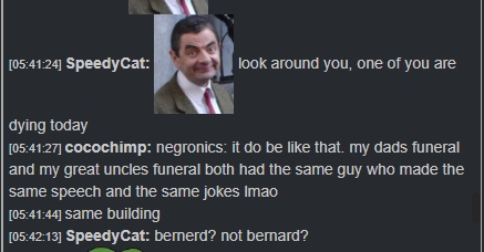 ЦСР (Сисира) тоже проявлял себя не с лучшей стороны - к примеру, одно время он запрещал экс-моду Девиатору постить смайлы с бурятками просто потому, что они ему не нравились. Весьма обидчивый и в приступе гнева может забанить насмерть. Но он, хотя бы, отвечает за работу движка и научил пользователей вставлять картинки в чат. В первом полугодии 23 поссорился с Галахадом и запилил отдельный канал, отключив на рандоме весь функционал. Довольно жесткий тип.