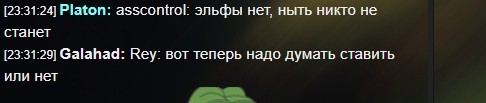 Кароч, дорогие подписчики, очередная новость из барака. Товарищ Рэй (он же т. н. в некоторых кругах СРЭЙ, куколд, олень, рогоносец) забанил Бэйбилоха (Бабилона), за то что тот пукнул неправильными символами в чат. А сам задрал мордаху и смотрит на Галахада, что тот скажет. Отчитывается, заискивает. Отчет сейчас напишет. Этот скрин в муваче удаляется со скоростью света, там нельзя плохое про мочерастическую хунту писать. Тут тоже, но пока Рей раскачается, я успею обновить архивач, чтобы сохранить этот пост в веках.