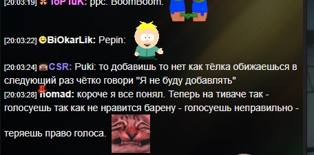 - могут скипнуть твой видос по беспределу (например, чтобы успеть показать собственное видео) или поднять его, пока тебя нет в чате - и плевать, что ты их об этом не просил. - ставят свои видео без меры и локают их без опроса. Особенно этим грешит Илюмс, но в том же обвиняли и Алоиса. Деня, ЦСР, Шторм и Пуки тоже злоупотребляли подобным образом. Отсутствие регламентации бампов, которые сами по себе не являются чем-то плохим, привело к процветанию мочепроизвола. Каждый хочет, чтобы его видео смотрели без голосовалки и не скипали, и чтобы не допустить этого, использует такие нечестные инструменты, как завышение скипрейта, а если и это не помогает - то скиплок. Особо недовольные отправляются в чуланчик. Голубые модераторы в этом плане ведут себя уважительнее к тивачерам, но и они, глядя на рыжих коллег, постепенно развращаются. - пользуясь своей властью, занимают плейлист после очередного кино в прайм-тайм своими видосами. Рекордсменами в дисциплине "засри лист" являются Илюмс и Эльфа. Первый с маниакальным постоянством наваливает по 10-15 коротких вебмок, которые, как он считает, все обязаны заценить, а вторая мучает Тивач длинными рецептами на 10 минут. - запрещают длинные видео на иностранном языке, но сами спокойно ставят их. - удаляют видео пользователей, которые в настоящий момент отсутствуют на Тиваче. Разве видео становится менее ценным, если его аплоадер находится оффлайн? - Тивач - официальный видеоканал Двача, но при этом на нём запрещено смотреть ужасы раньше полуночи и постить порношебм в лист. Ебало этих мамкиных воспитателей имагине? - нетерпимы к видео, в названии которых присутствуют символы, перекрывающие соседние позиции в плейлисте. Серьезно, за это можно получить бан. На американском тиваче такие видео не только никого не смущают, ты даже можешь постить их названия в чат. Видимо, дело в том, что эти символы не просто "ломают лист", следуя формулировке администрации - хотя как его можно сломать, если это просто название, которое пропадет из листа, как только видео закончится? Они вносят элемент хаоса в привычное существование, который оранжевые контролировать не в состоянии. А если не можешь контролировать - удали. Это покушение даже не на безопасность, а на саму систему. Это выражение свободы, а свобода на Тиваче допустима только в рамках, установленных Галахадом. - принципы отбора реквестов в следующие туры при голосовании чётко не прописаны. Сперва они могут взять все варианты, кроме набравших наименьшее кол-во голосов, а потом - только самый популярный и пару тех, которые дышат ему в затылок. Варианты, набравшие среднее количество голосов, могут не пройти просто потому, что некоторым модерам - например, тому же Галахаду - нравится проводить ограниченное количество туров. - в опросе может быть до 15 вариантов, но каждый раунд длится не больше 2 минут. Ну вы поняли. - у разных модераторов были разные лимиты отбора уже просмотренных фильмов. Галахад и большинство прочих модеров не брали ленты выше 500 позиции в списке просмотренного. Илюмс брал до 1000. Сейчас лимит задрали до 1500. - соблюдается внутренняя иерархия при бампах. Сперва ставится видео Галахада, потом всех остальных (если несколько модеров залили по видосику одновременно). - реквесты модераторов почти всегда в верху списка. - как минимум один неудобный пользователь был предполо