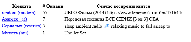 Вифоси (v4c) https://www.cytu.be/r/v4c Американский Тивач. Основной репертуар: мемы, короткие видосики, смищные видео и т. д. За последние несколько лет начал показывать и фильмы с передачами (раньше их крутили на связанном канале под названием m4c, но тот почти умер после появления Снидача). В 2019 году подвергался нападению тивачеров из-за ограничений в отношении русскоязычных видео. Обладает развитой инфраструктурой, которой Тивач достиг лишь в последние годы. Не очень приветлив к иностранным видео.