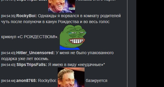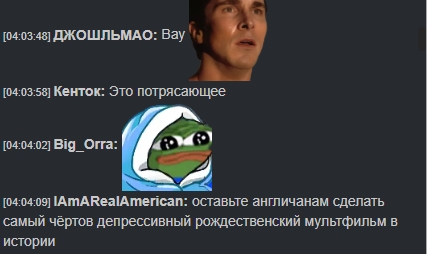 [06:47:25] DreadRaziel: Artifex: /gigakek мы просто выкрикиваем теги эмоций во время фильма [06:47:25] Ночной круиз: lel [06:47:26] ЧизБургер: что, если бы вы были окружены девушками, которые не были бы вашей девушкой, и они сказали: «ЕСЛИ ТЫ ПРИКОСНЕШЬСЯ КО МНЕ, МОЯ МОЯ ДЕВУШКА», но они продолжали кружиться все ближе и ближе, и утиный ролл не сработал. [06:47:27] Артифекс: /jej [06:47:29] DreadRaziel: ХЛОПУШКА [06:47:31] ЧизБургер: /shake