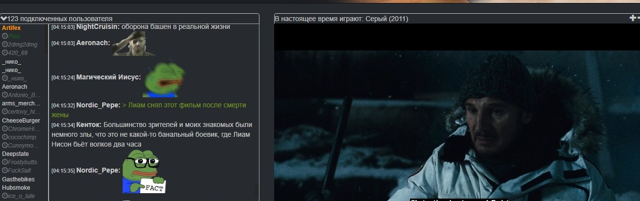 Онлайн не рекордный, но обычно в районе 120. Выходит, поистине народное кино уровня Бэ. Разница в реакции чата по сравнению с американским, конечно, кардинальная.