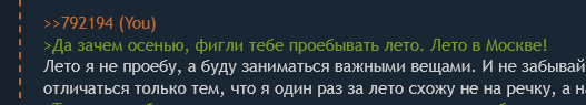 >>792133 >Заходи осенью, будет тебе второй сезон Да зачем осенью, фигли тебе проебывать лето. Лето в Москве!