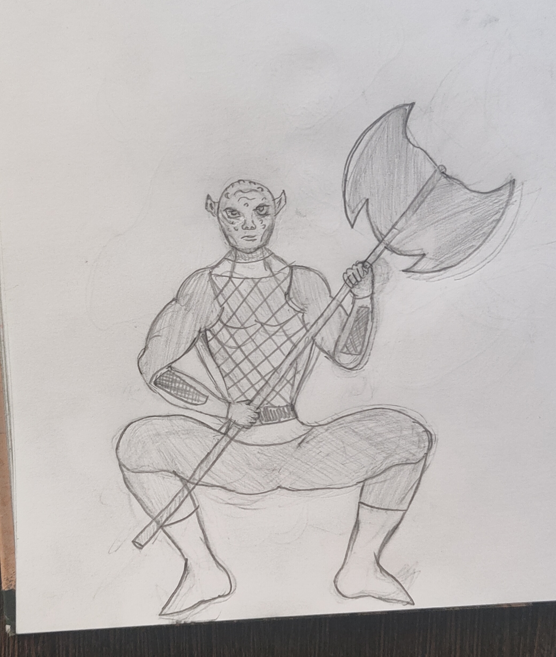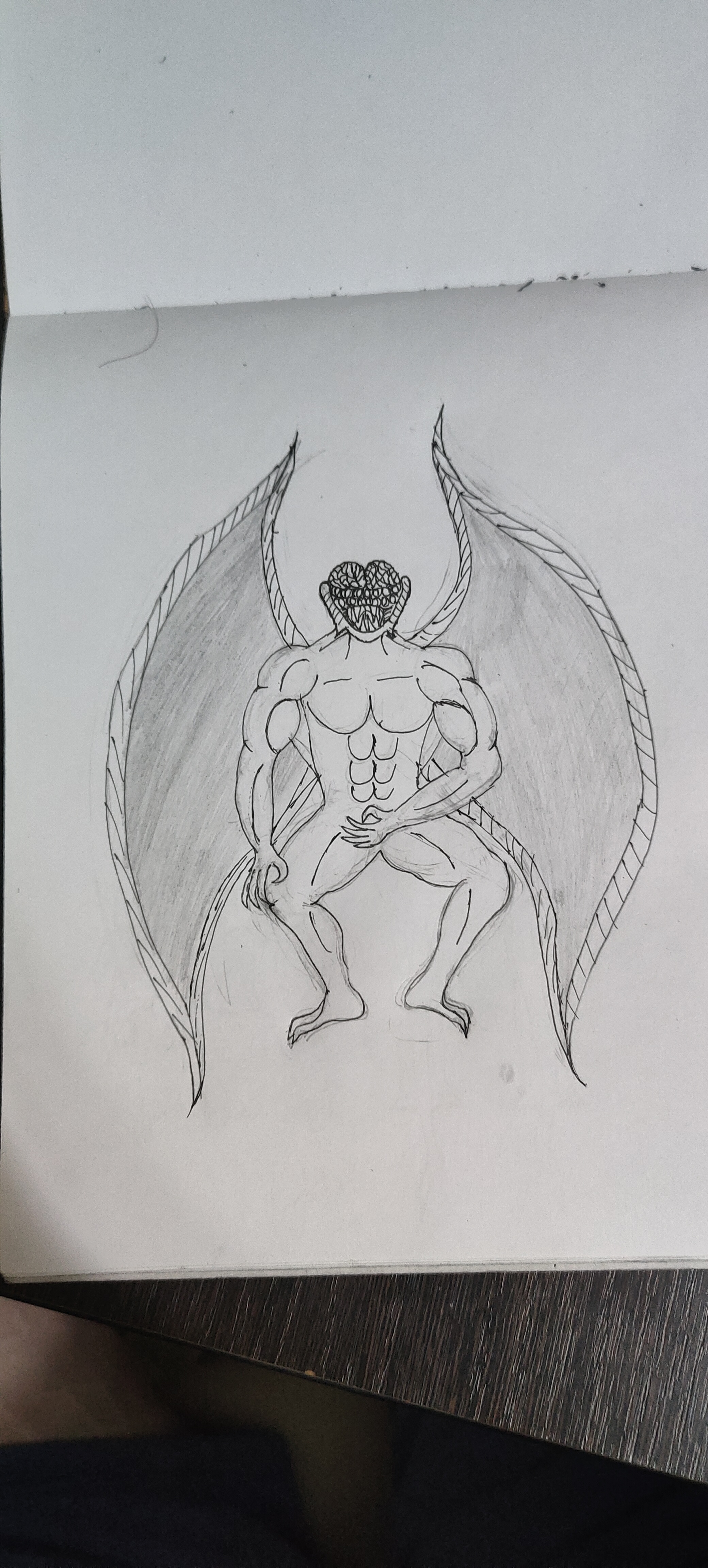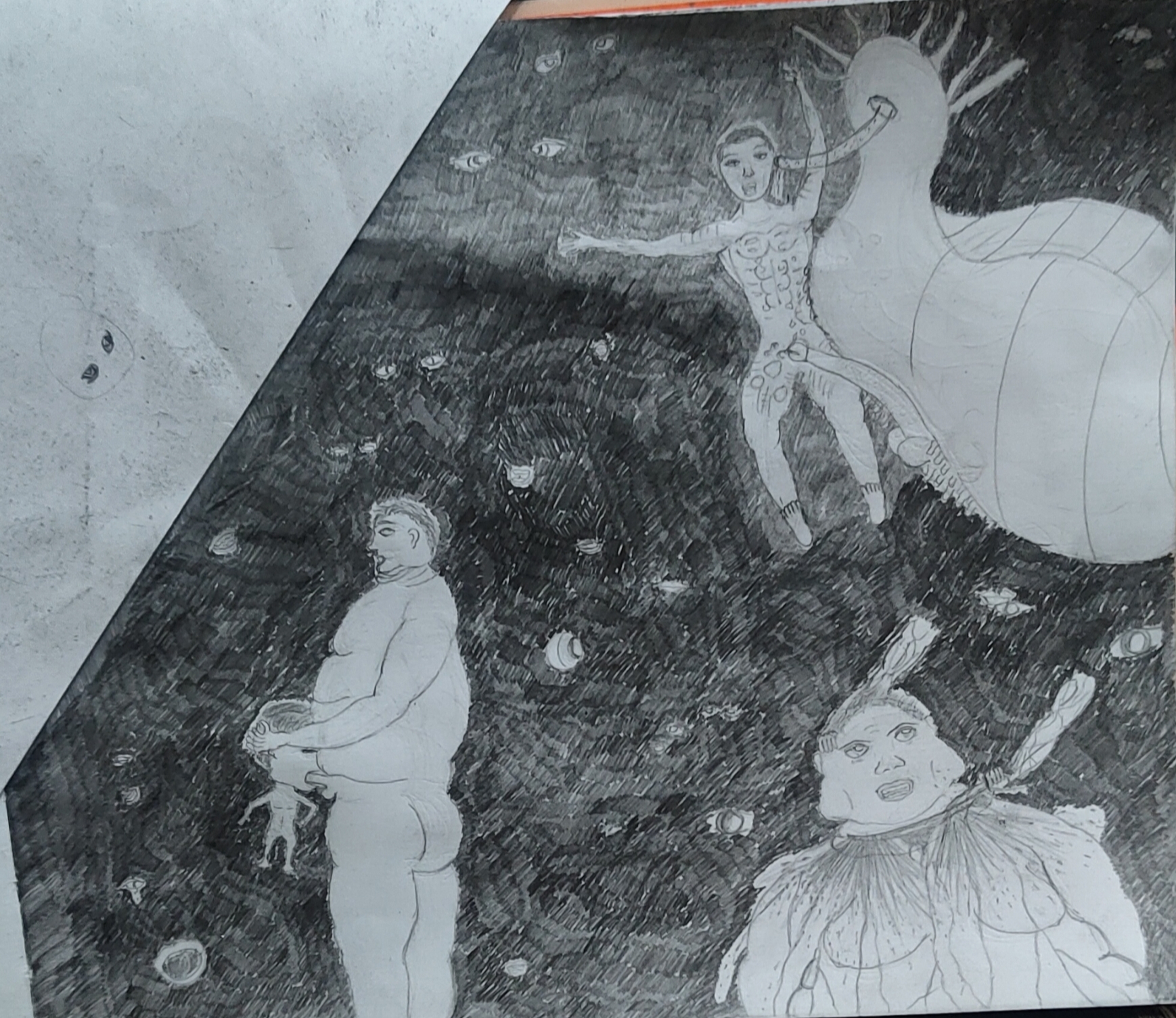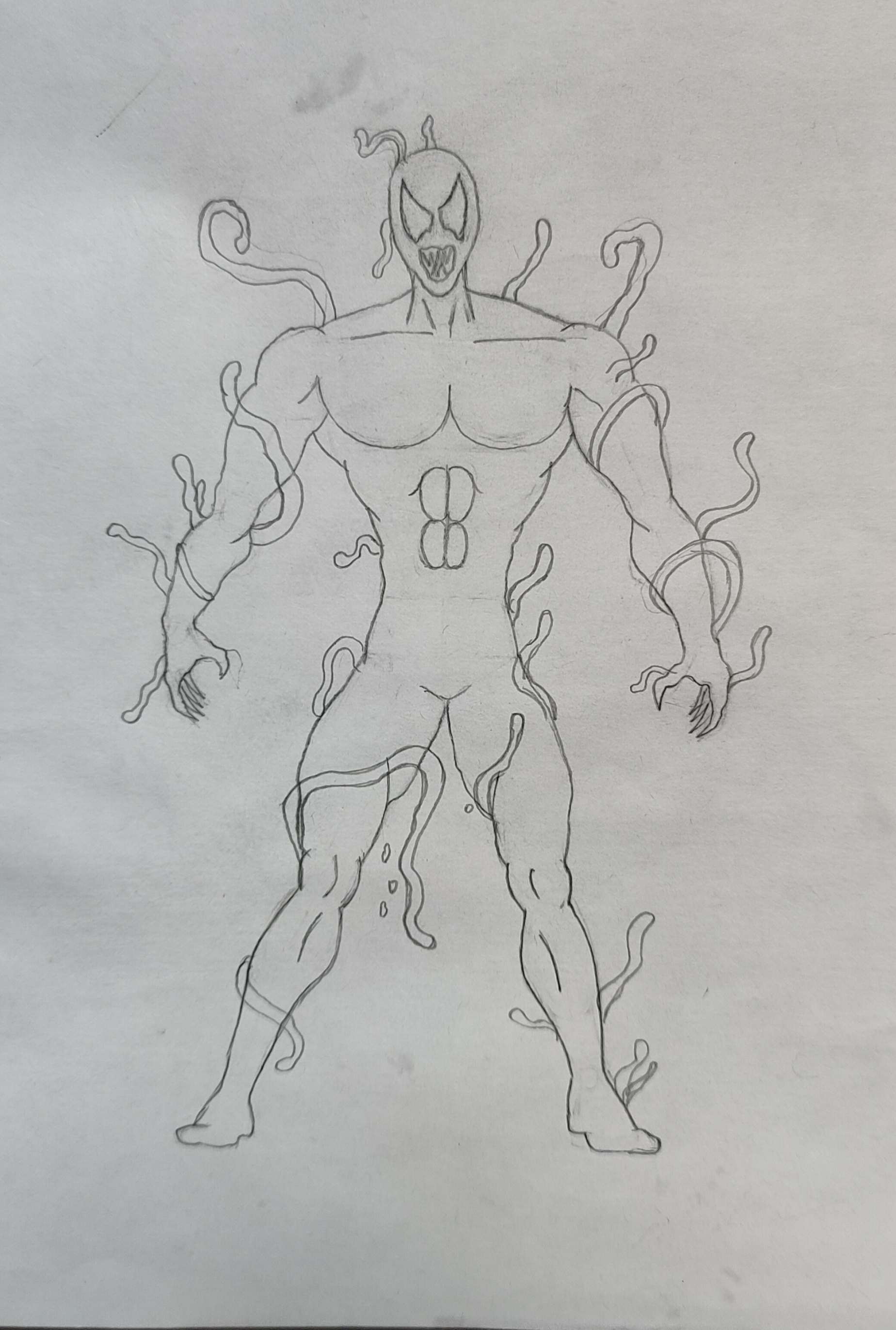 Рисовал крипи картинку. Перед работой нарисовал кровать, которая ну просто большой прямоугольники несколько прямоугольников поменьше. Слабо, не нравится. После работы приехал, покачал бицуху резинкой и гирями, рисовал толстяка с вспоротым животом. Получилась хуйня, сиськи и живот хотя бы забавные, и ноги тоже имеют свой прикол, но лицо совершенно не нравится да и сама голова в целом, кишки вообще молчу, просто насрали в живот. Правда это все же черновой вариант, да и карандаши у меня остались только ублюдские, которыми невозможно рисовать, они тупо мнут бумагу, ещё и заточить их невозможно, надеюсь, получится перерисовать получше.