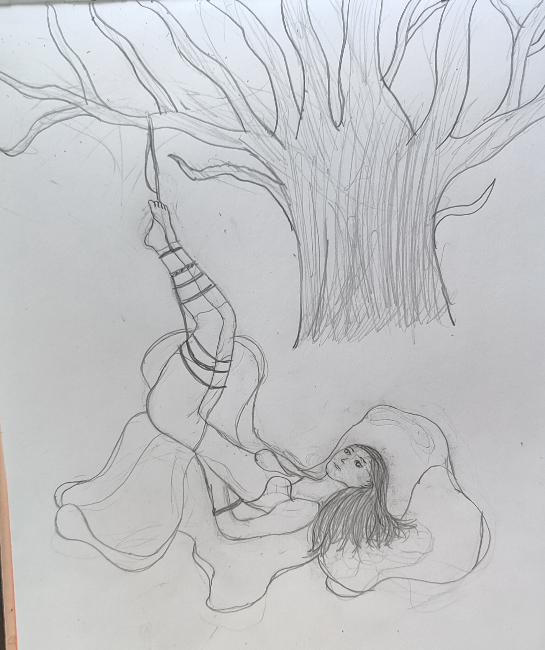 Рисовать сел поздно, по времени как будто и нормально, пару часов посидел, но по продуктивности.. я очень медленно рисую, я вот прям не понимаю, как на пикрил могло уйти столько времени, как будто долго было 15-30 минут уйти, тем более у меня черновой набросок был, но вот так.. если бы дерево тяночку к нему ещё нарисовал, было бы окей, а так мало вышло совсем.
