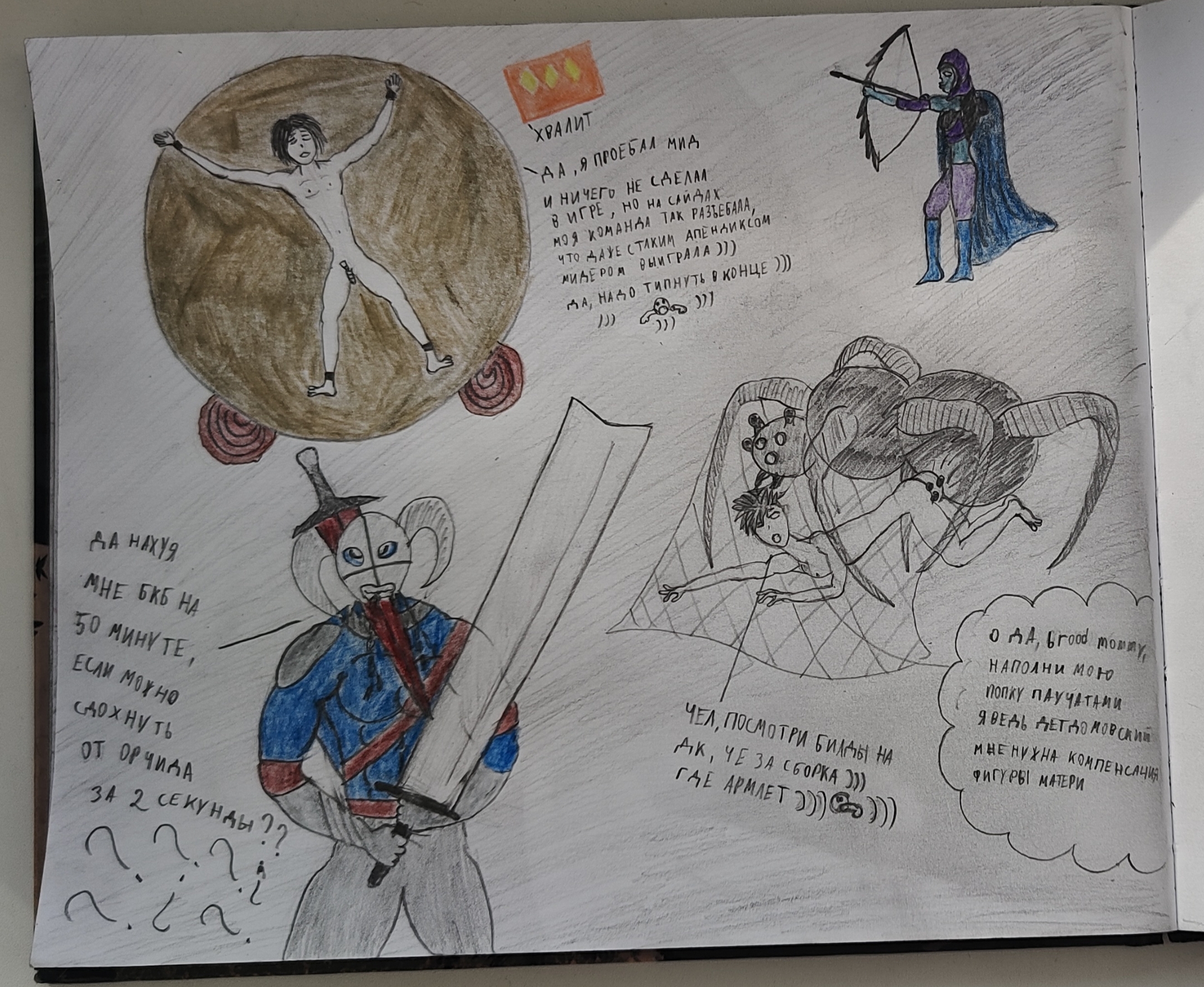 Пойду на занятия ирл всё-таки намного раньше,чем планировал( чуть ли не через год). Не определимся пока, когда, после НГ наверно. Ну хочется два микрозайм и мелкую кредитку закрыть перед этими моментом просто. Я просто задолбался рисовать то, что я рисую и как рисую. Я получаю удовольствие конечно, но просто то ,что я в основном рисую, это сюжетно и по замыслам 1/10 часть от того, что бы я хотел рисовать. Не в смысле что я хочу рисовать лучше масштабнее детальнее и тд(хотя и это тоже да, блять ну эта композиция на рисунке (отсутствует) ну это просто пиздец, каша мала), а в смысле что я хочу на 90% рисовать насилие и страдания, а в остальные 10 уже приколы ,забавные комиксы, дота персонажей и тд. Если рисовать что-то, что изначально как прикол воспринимается, если получится всрато, это в целом не испортит рисунок, будет по своему прикольно. Но если ты изначально рисуешь что-то в атмосфере ужаса, а получилась потеха, это не очень здорово уже.