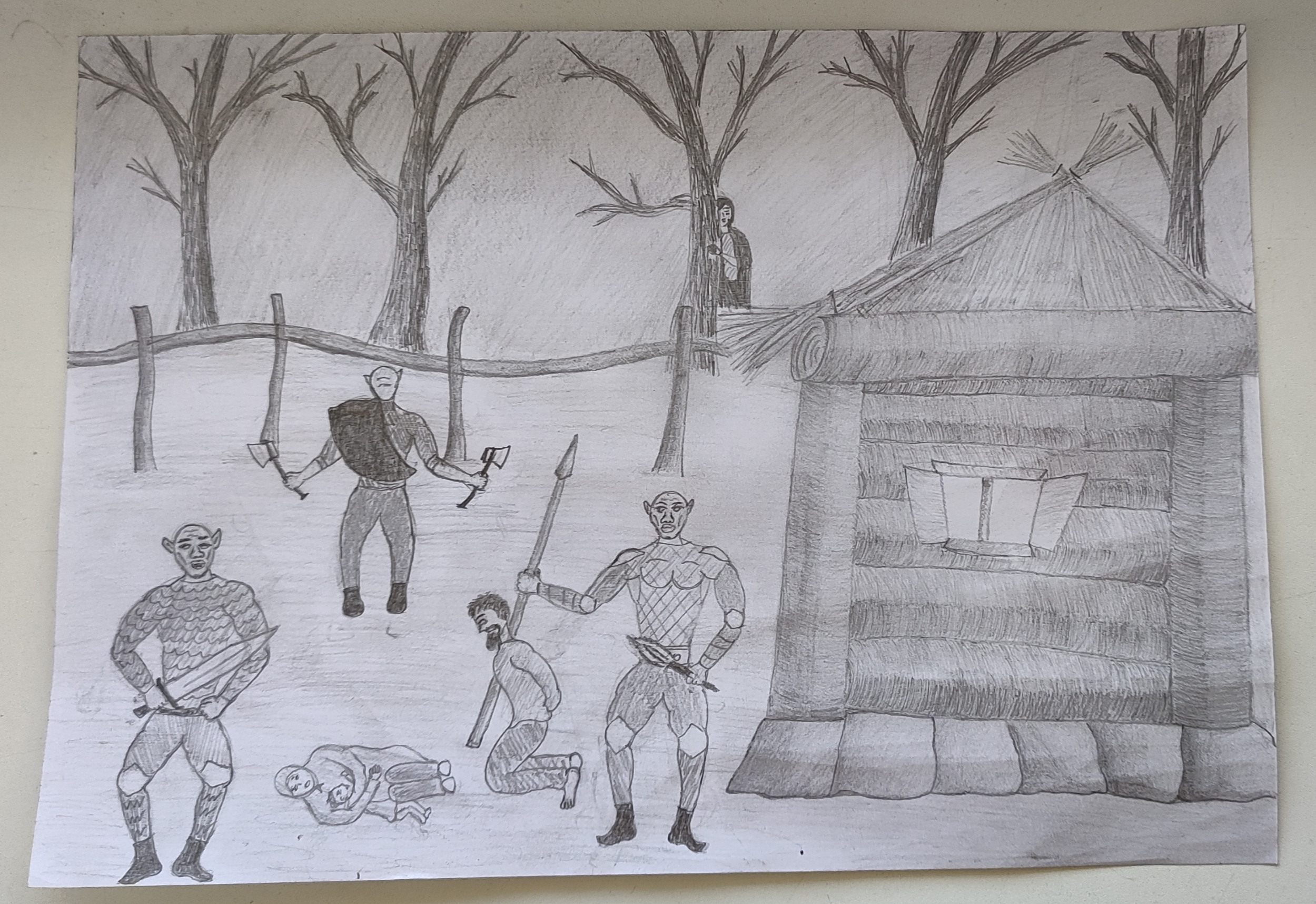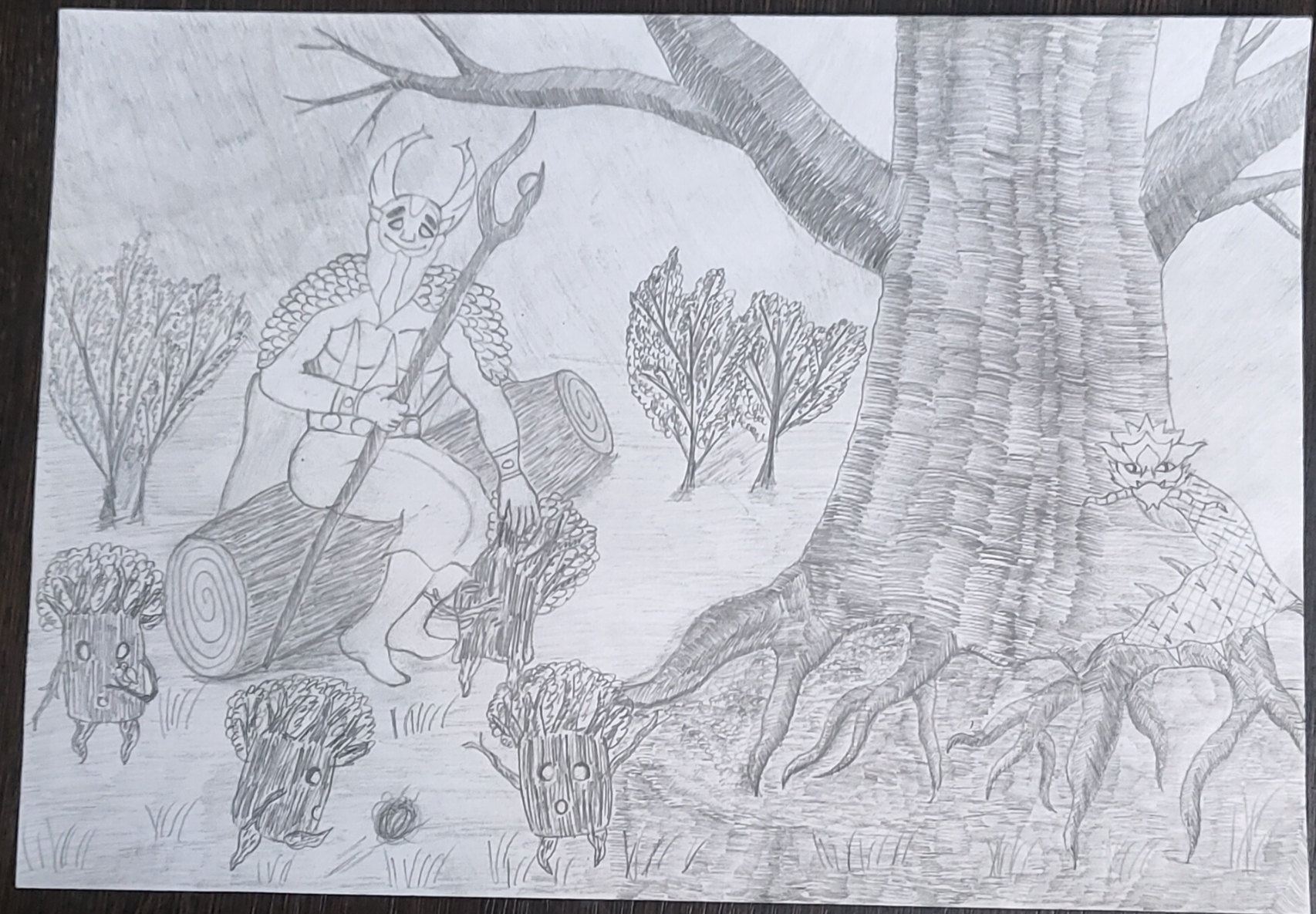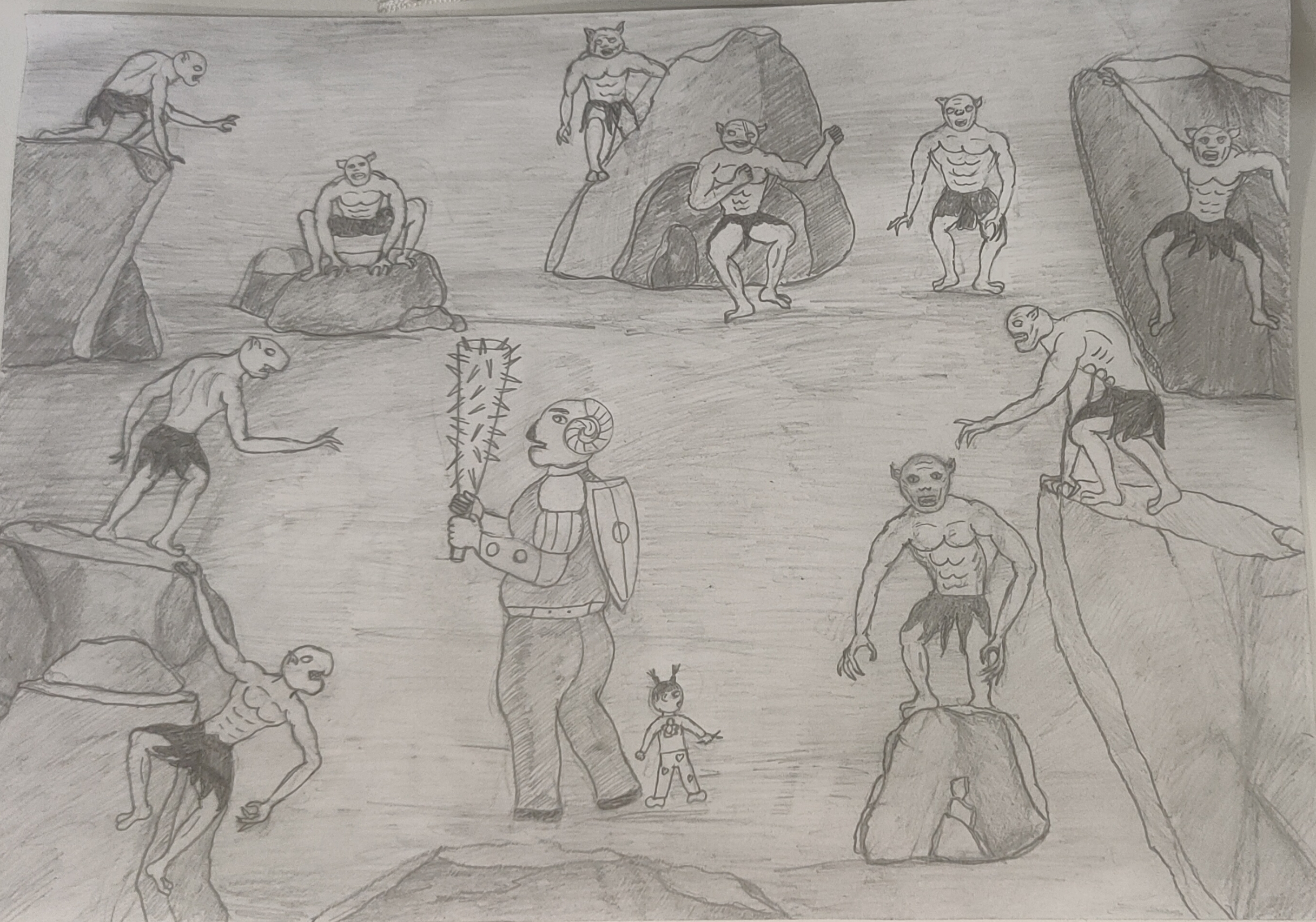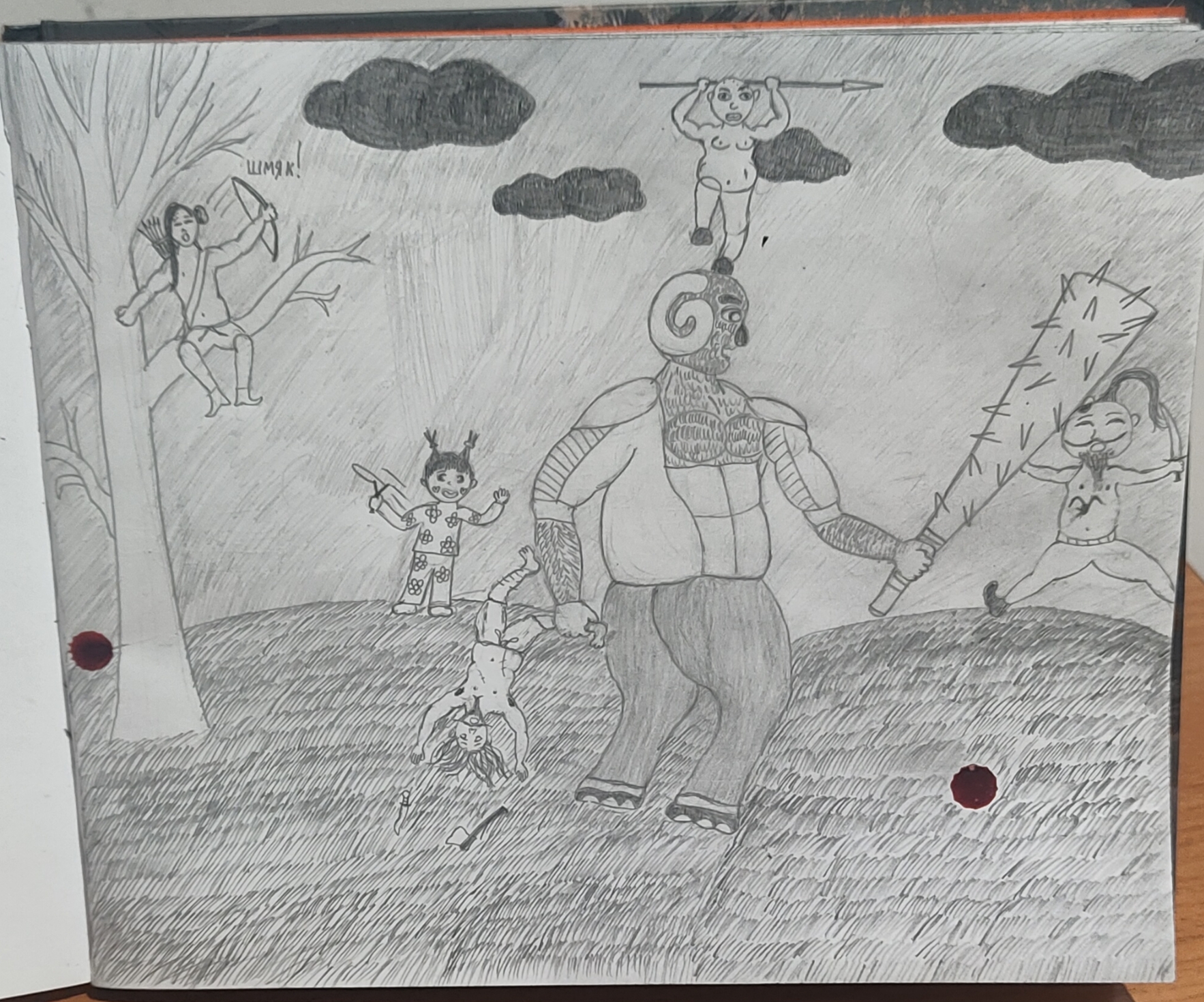 Получилась каша Малаша полнейшая, никакой композиции, слоев ландшафта. Детский рисунок получается. Полоска земли, полоска с персонажами, полоска неба, все.