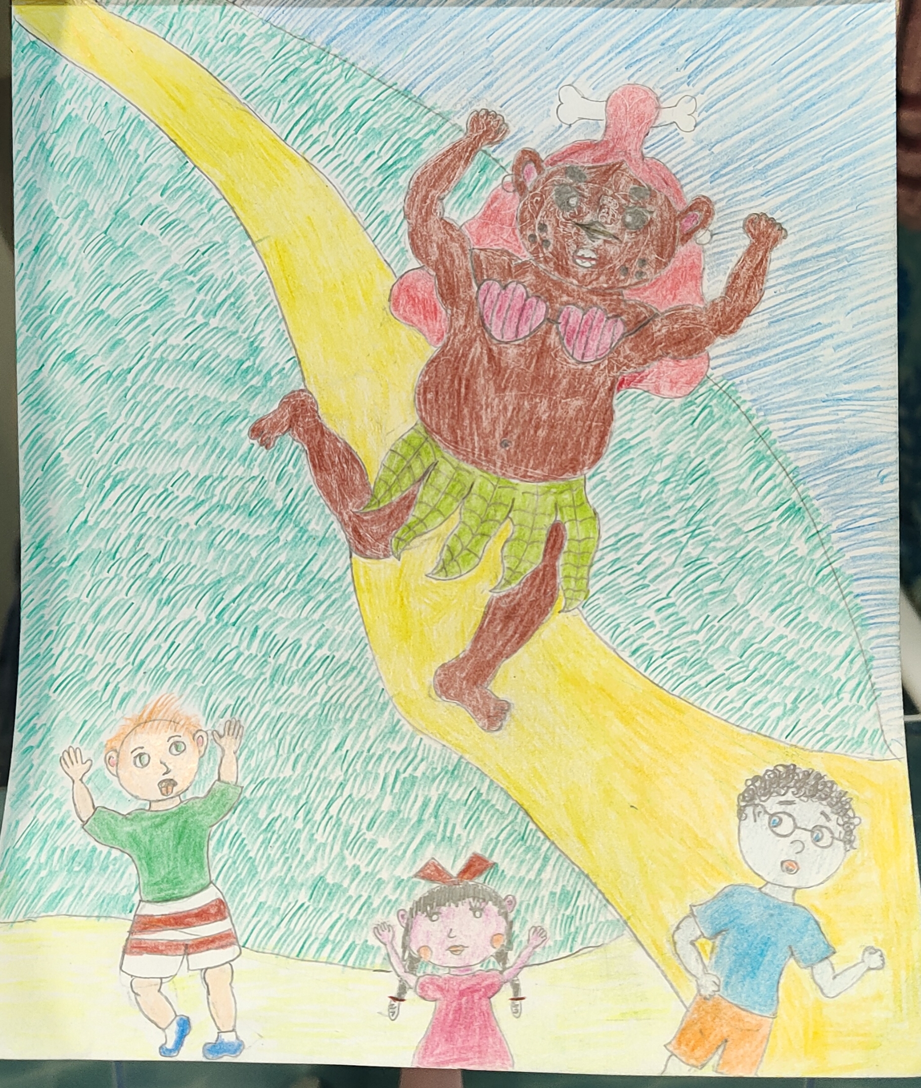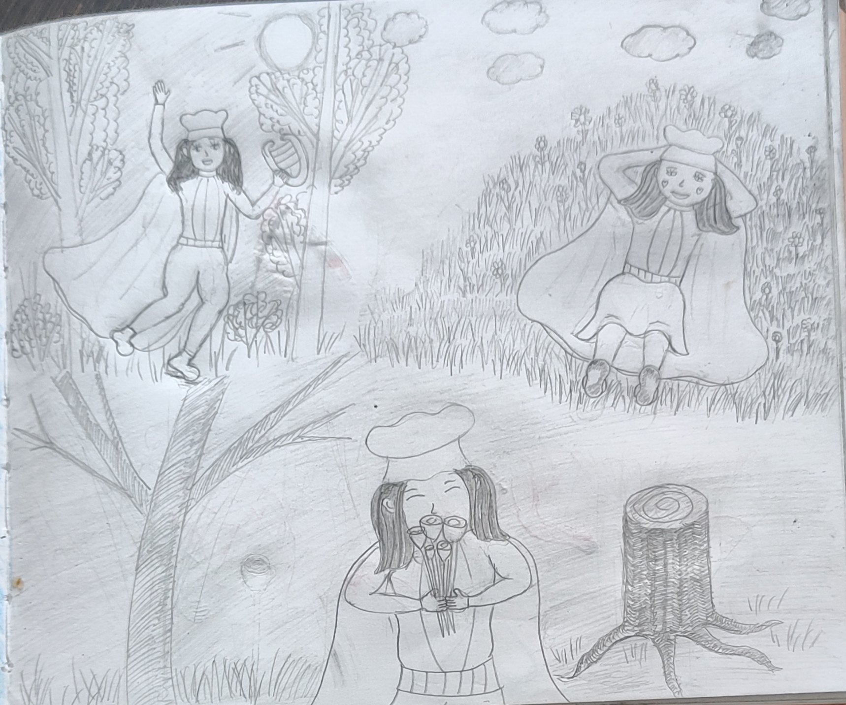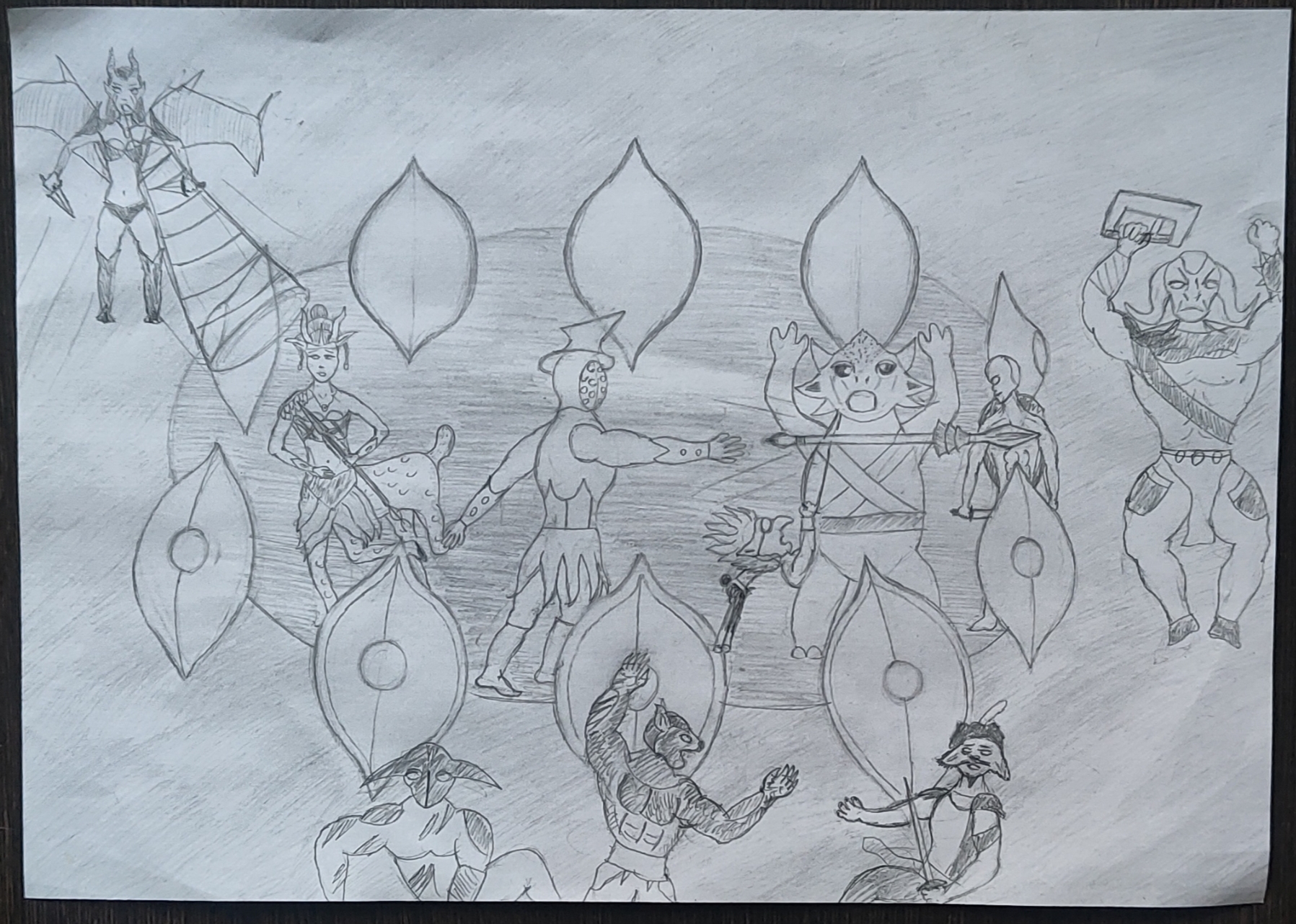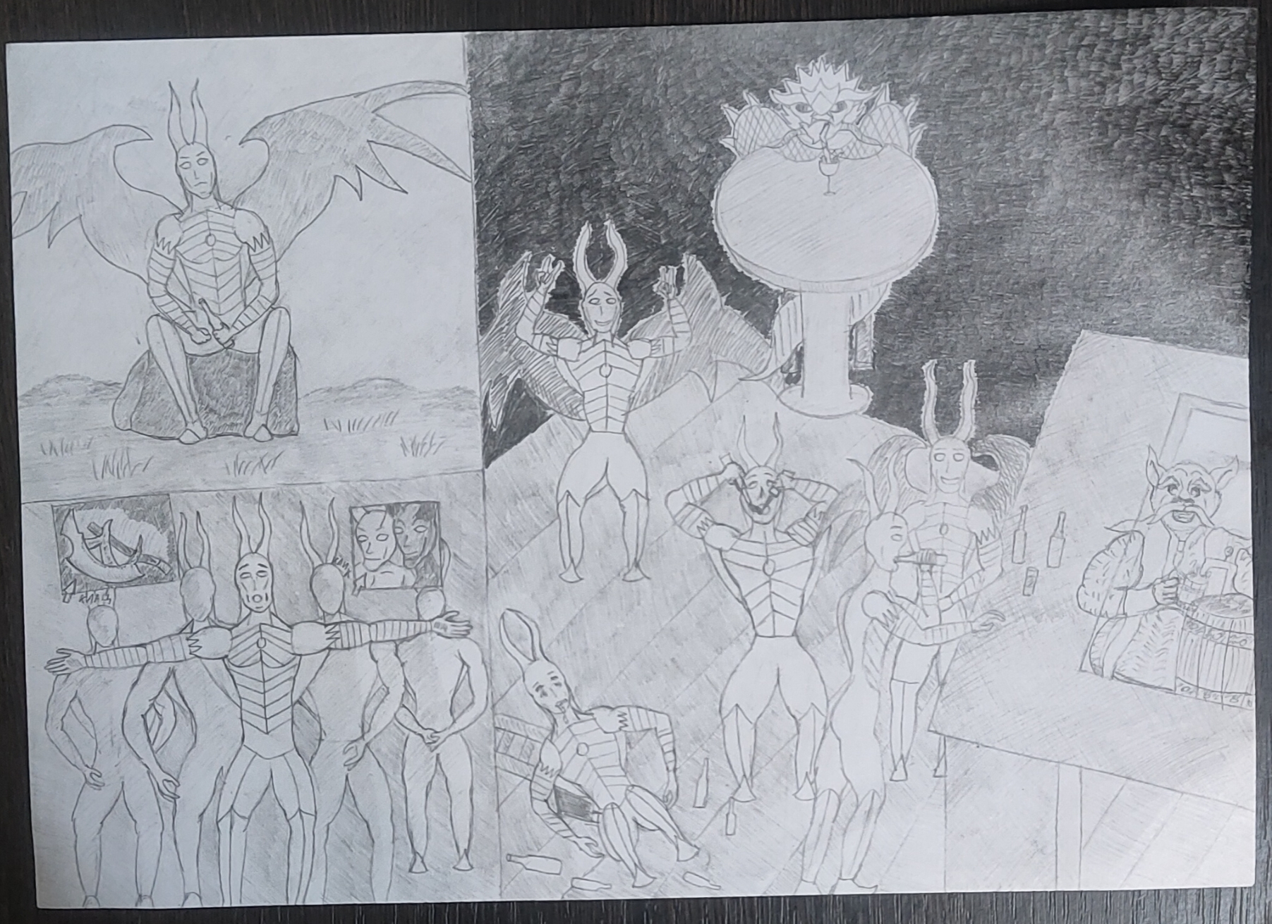 Получилась каша Малаша полнейшая, никакой композиции, слоев ландшафта. Детский рисунок получается. Полоска земли, полоска с персонажами, полоска неба, все.