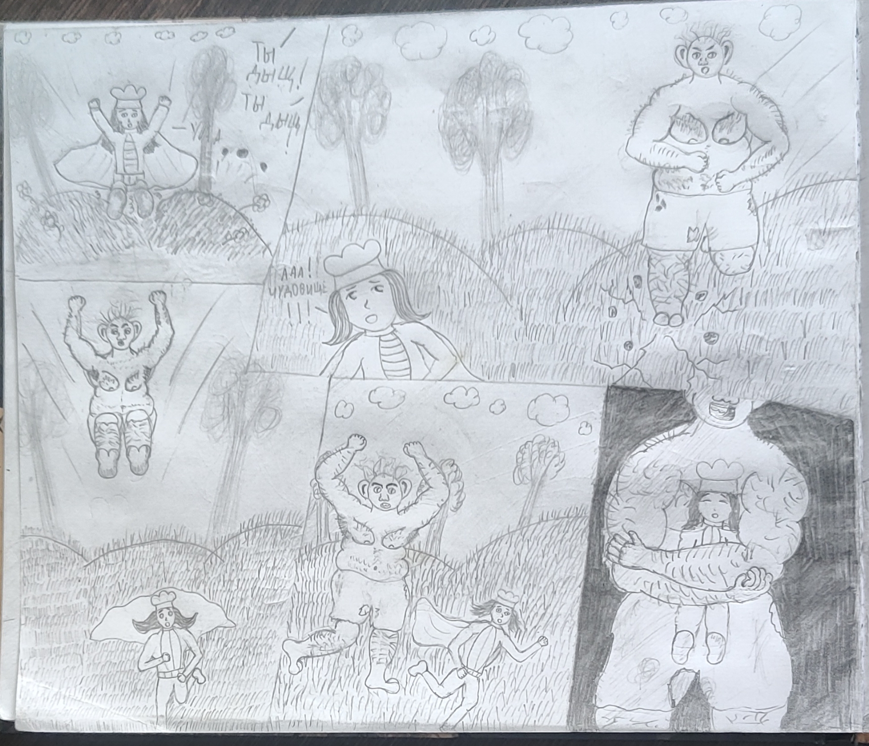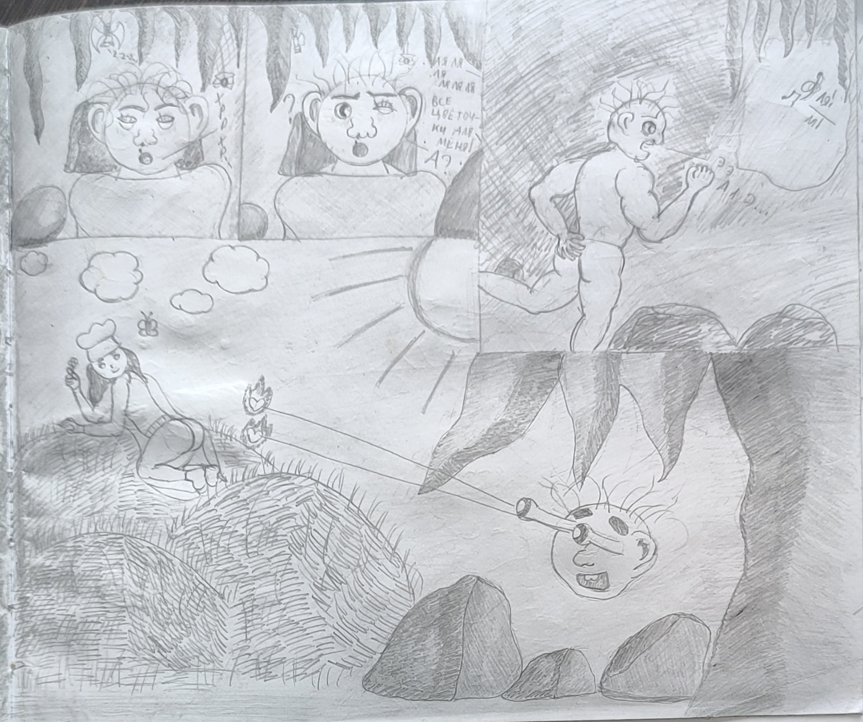 В целом доволен, только последний лист смазал немного впечатление. Верхние три кадра на нем какие-то отсосные. На фоне серая мазня непонятная вышла. Водная гладь на таковую непохожа совсем. В нижнем кадре я просто заштриховал серым, и как -то особой разницы с моей "водной гладью" и не наблюдается.