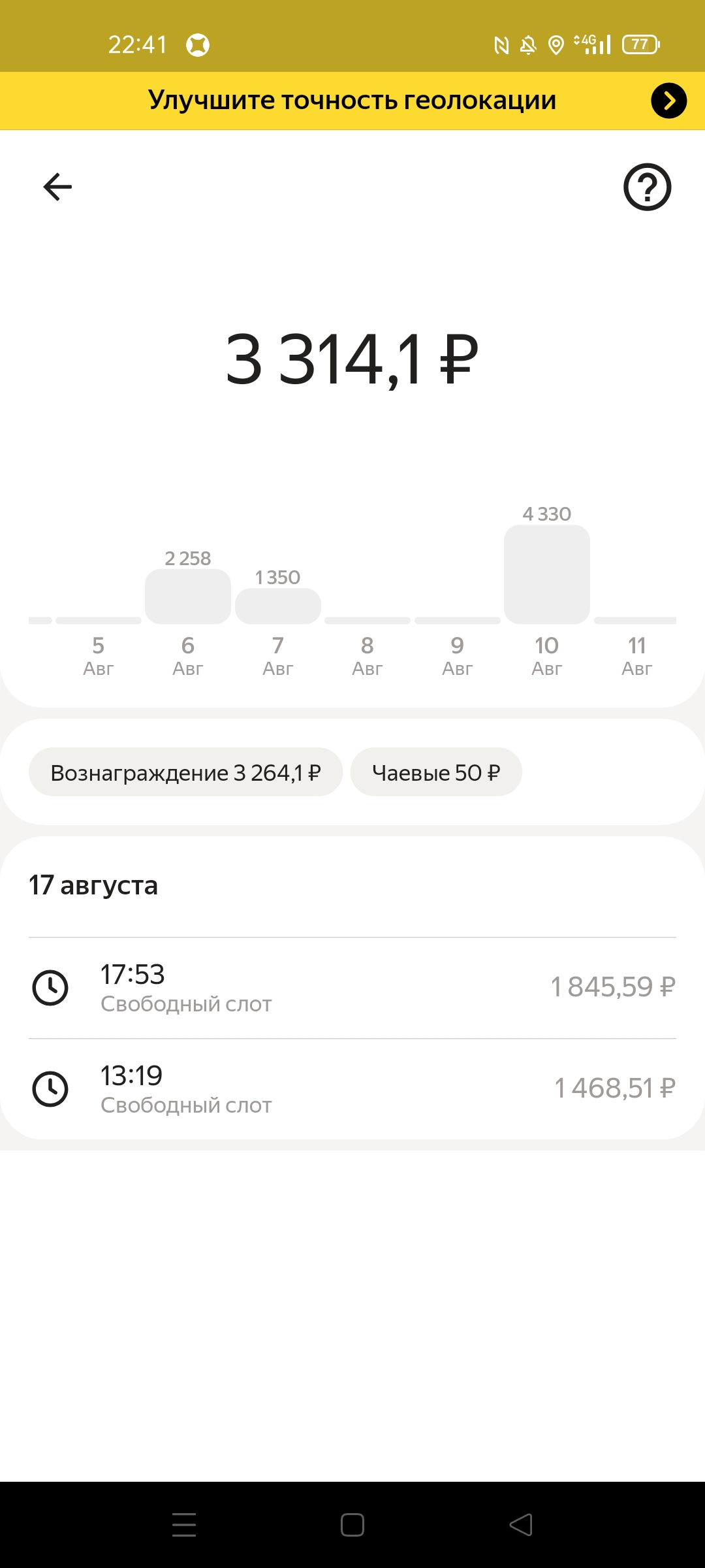 Работал вчера плохо. Опоздал на два часа. Ещё час+ в середине слота просидел в КФС и последние полчаса заигнорил заказы и поехал домой.