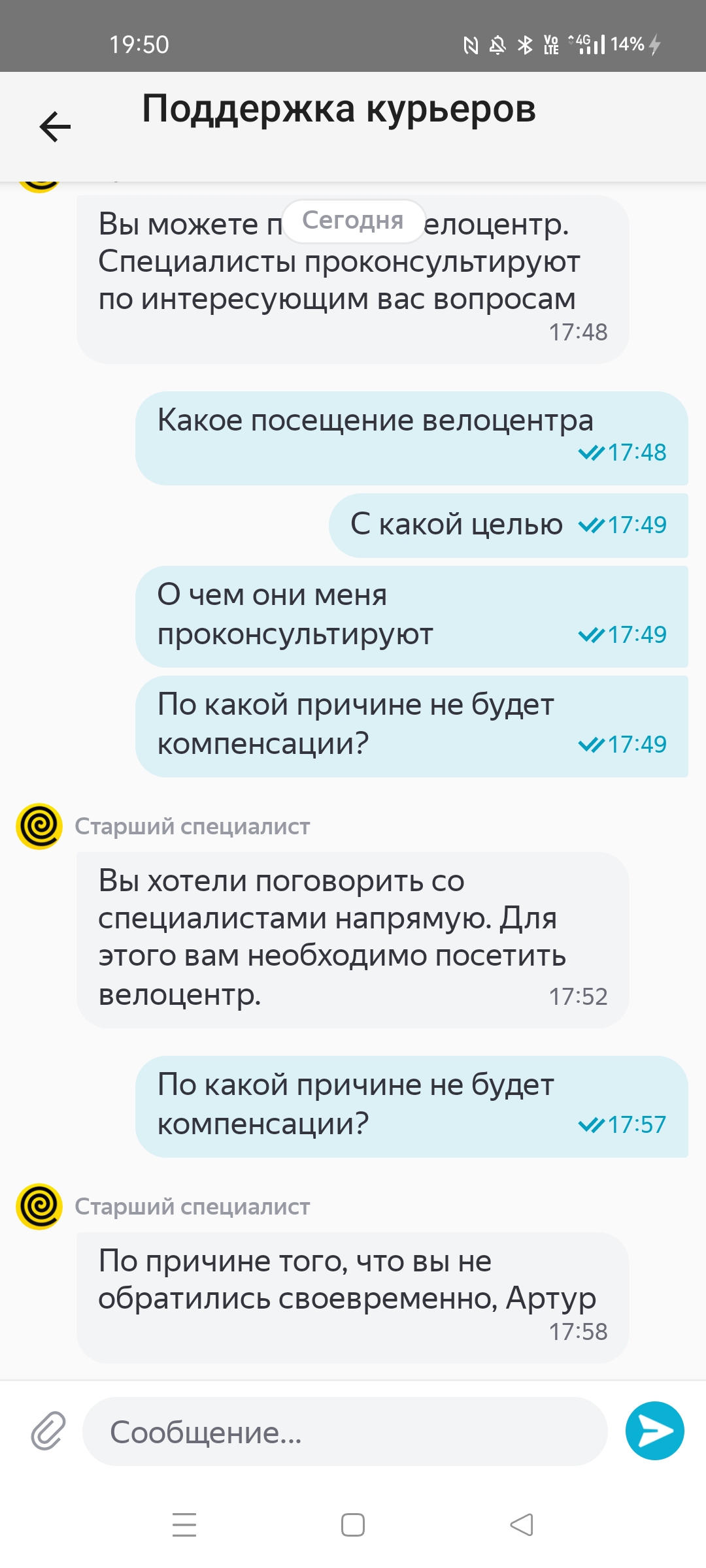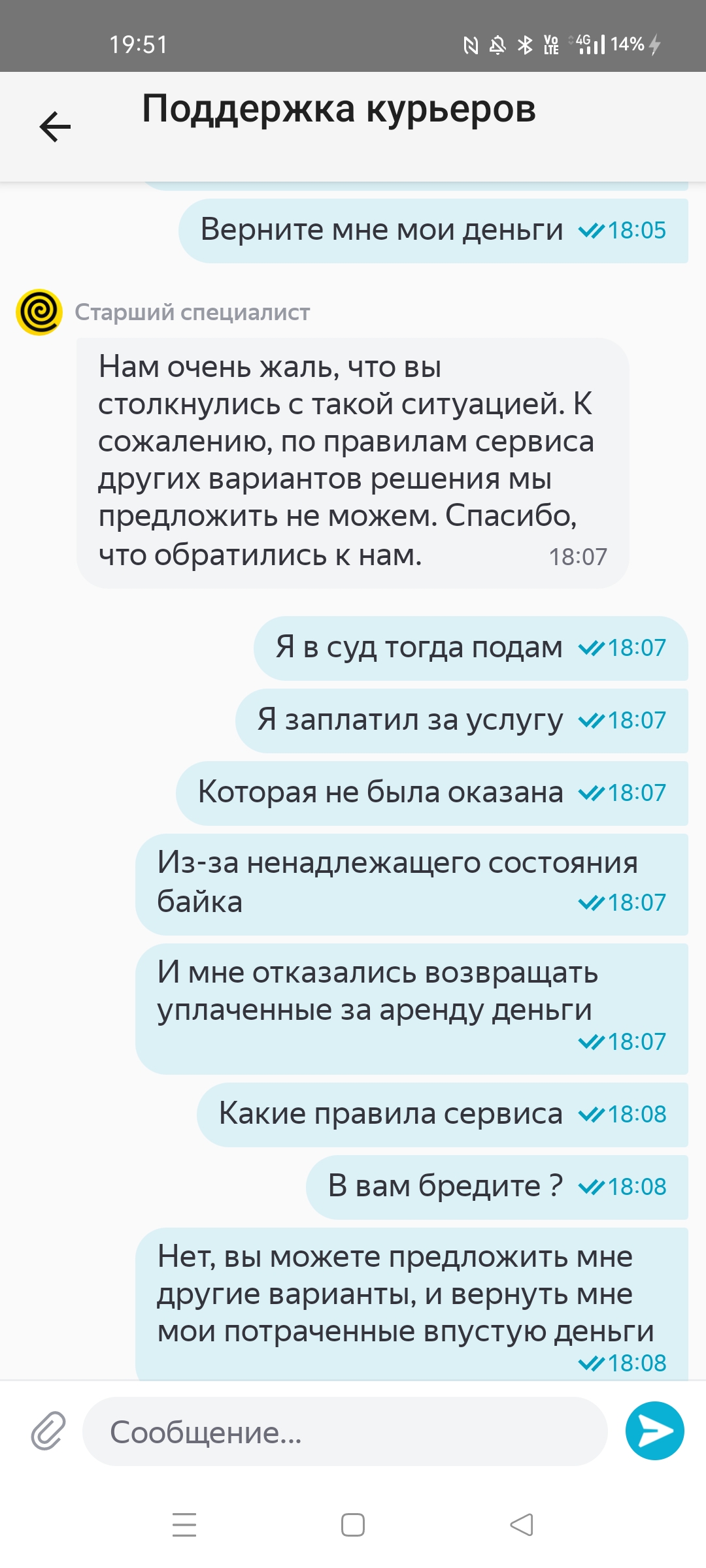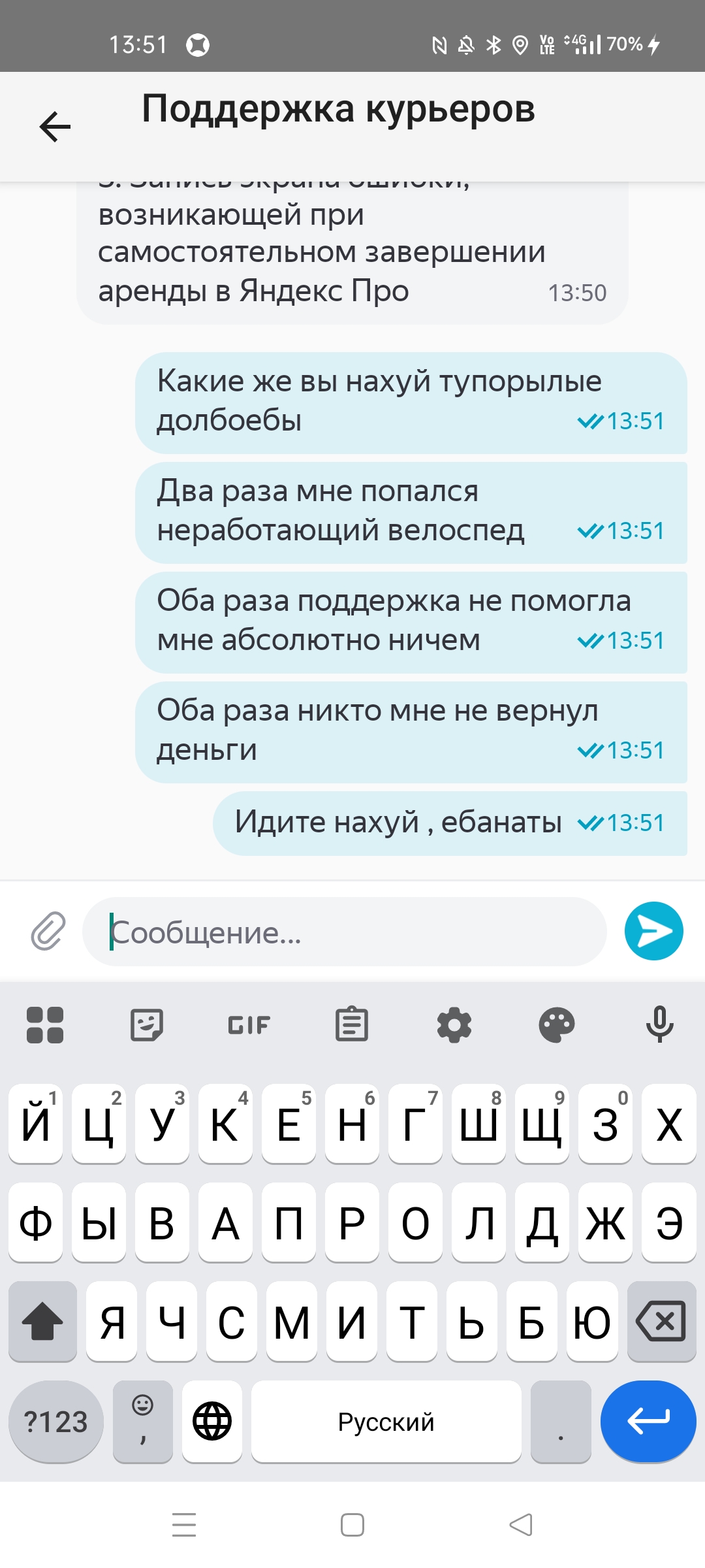 Меня итак уже заскамили, выебали нервы, ещё и я перегонщиком велосипедов должен забесплатно быть. Диалог с поддержкой закончится пикрилом, повез в руках в итоге до парковки, благо не особо далеко было. Пригнал, швырнул от души драндулет об асфальт. Тетка какая-то ещё завопила "зачем ты так швыряешь его!!!". Блять ну потому что так надо, есть у меня на это причины, твое какое сраное дело. Наверно я это делаю не просто потому что я ебанутый и мне так захотелось, не?