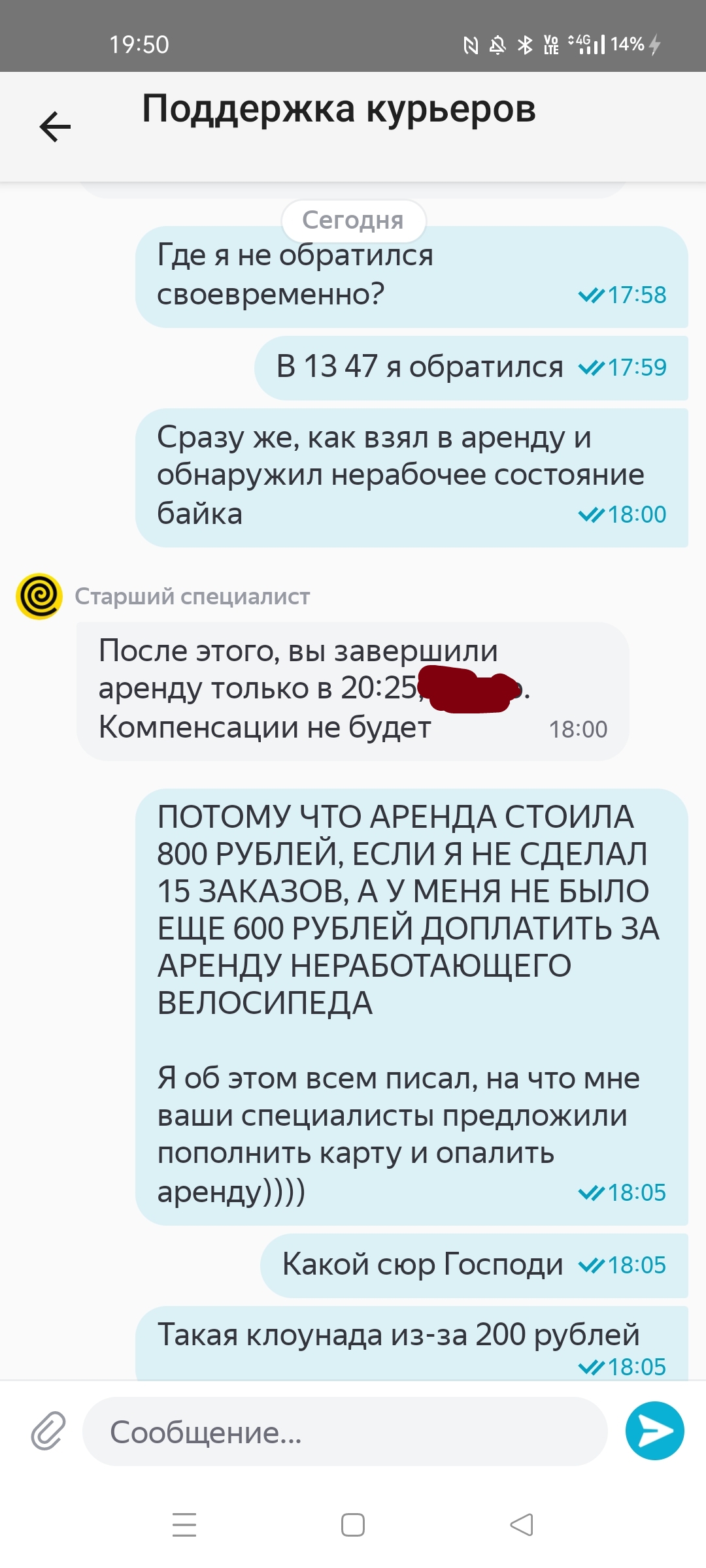 Оплачиваю 200 за второй день аренды, и думаете на этом все? Хуй там, 15 заказов за второй срок аренды не сделано, платите ещё 600. Думаю, хуй с вами, сейчас пешком отшагаю 15 заказов эти и закрою.