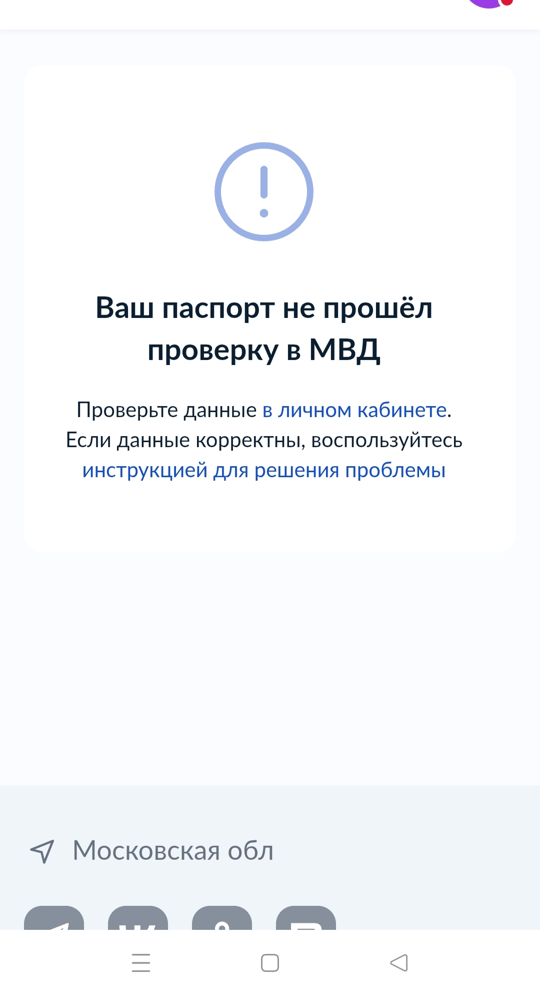 Данные нового паспорта не успели обновиться в базе МВД. Если получили новый паспорт, подождите 2 недели и запустите повторную проверку