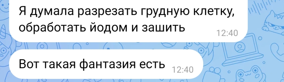 Купил сладкий подарок, зашёл к родителям, хорошо посидел у них, душевно так, почувствовал тепло семьи, как будто прям получилось отпустить мысли о гадости прошлого, о зависти сестре, что она выросла без всей хуйни, с которой столкнулся я.