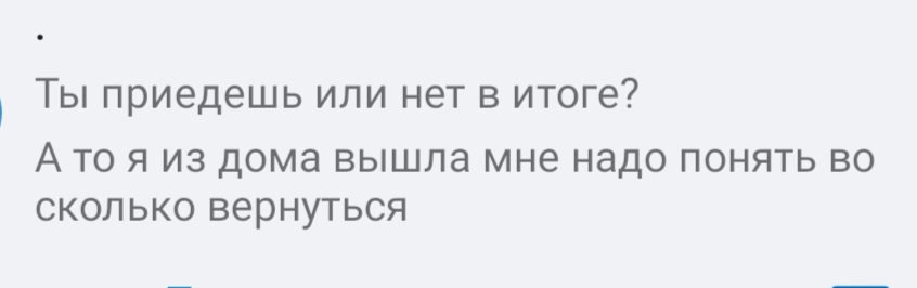 >>839621 Пока писал пост, эта пизда написала, нихуя по делу нет само собой ,начинается ебание мозгов, ой ну если не хочешь, не приезжай. Иди нахуй просто, и не приеду.