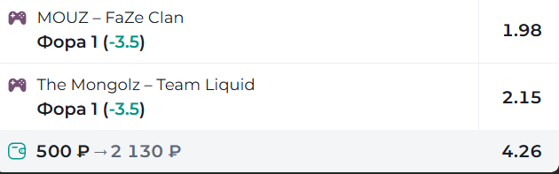 ща проебался и поставил просто 500 рублей без всякой форы на кэф 1.5 на поебду Монголов против Ликвида. Ну посмотрим утроит ли пари хоть одну из ставок.