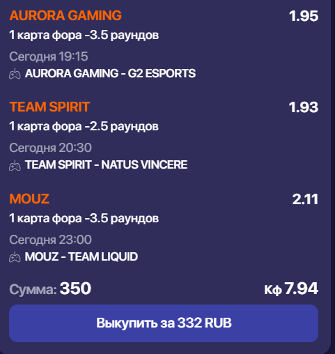 С экспрессами надо тоже подзавязывать. Был турнир где они отлично залетали, но сейчас полный провал (особенно из-за включения туда матчев рпл). Лучшие ставки в лайфе, но тут надо время тратить на отслежку. Завтра нужен 2:0 от Маузов. Это даст мне 5к, в дополнение к этому победа спирита подкинет еще 3к. Если оба события заходят то я останусь на 2 тыщи в плюсе и могу ставить дальше, если нет, то я на 6к в минусе и до следующих фрибетов на этом все.