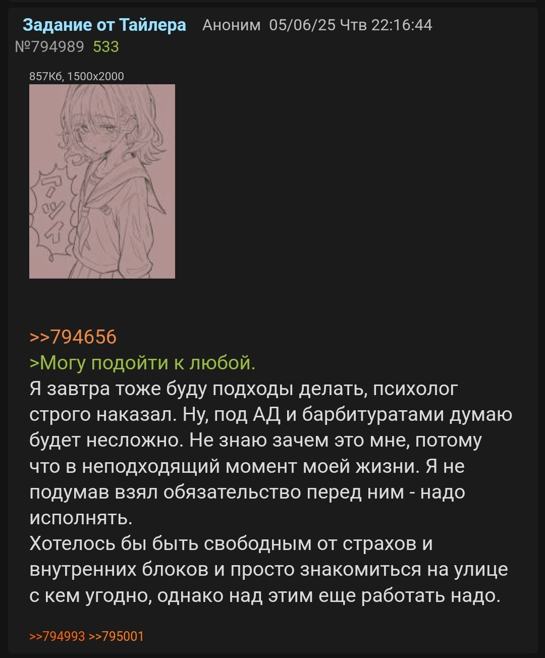 Но знаешь, меня искренне доебал тот случай с матерью, потерявшей ребенка. А я не ни разу не овуляшка, я вообще не хочу иметь детей. Но сука, как у тебя блять язык повернулся написать, что ты натянул ее и потенциально матерей двачеров, как ты вообще посмел свести это до секса и своего хуйца, как ты высрал все что ты высрал блять?? Как?? Объясни мне, я искренне этого не понимаю. Как блять ты можешь быть таким? Говоря о любви и принятии? Как?? И не смей мне говорить что с тобой поступали хуже, ты САМ писал что теперь якобы мужчина - а мужчина судит поступки только по себе, а не тому, как сложились обстоятельства и вели себя другие люди. Ответственность такая сложная штука.