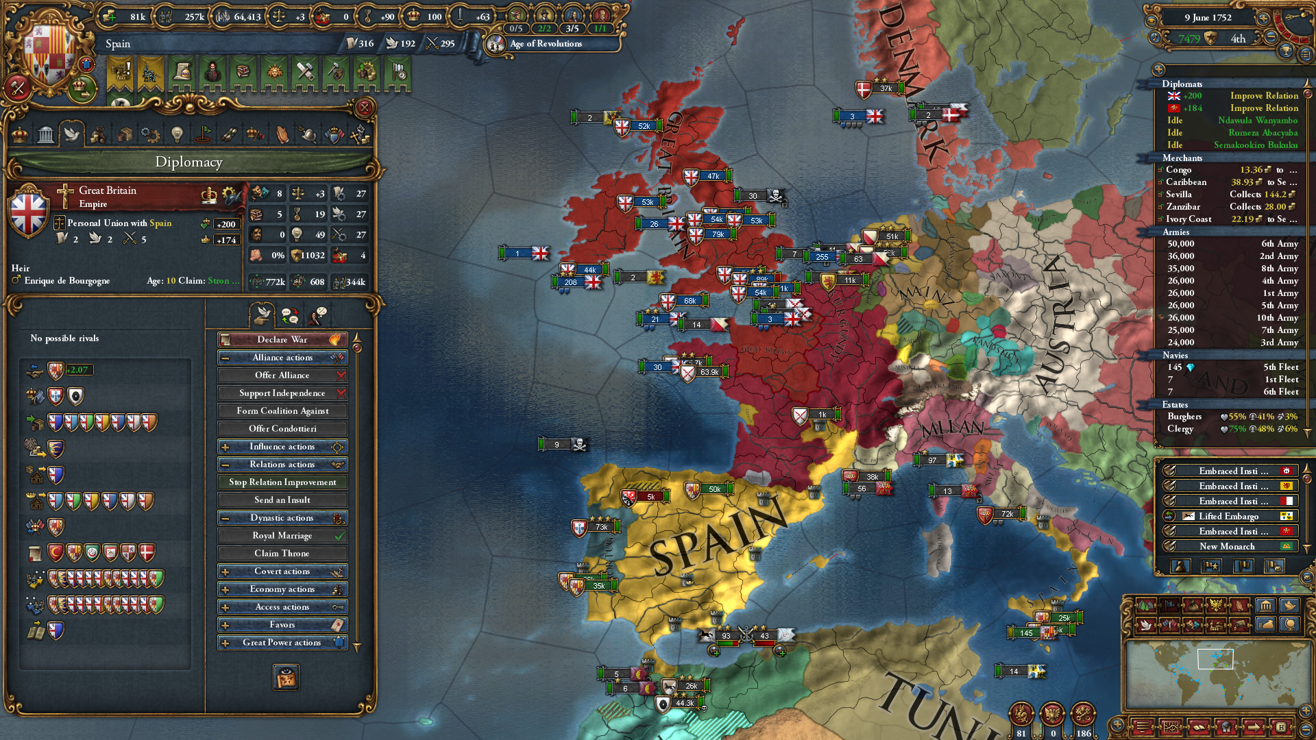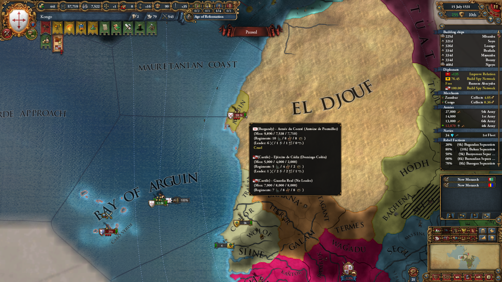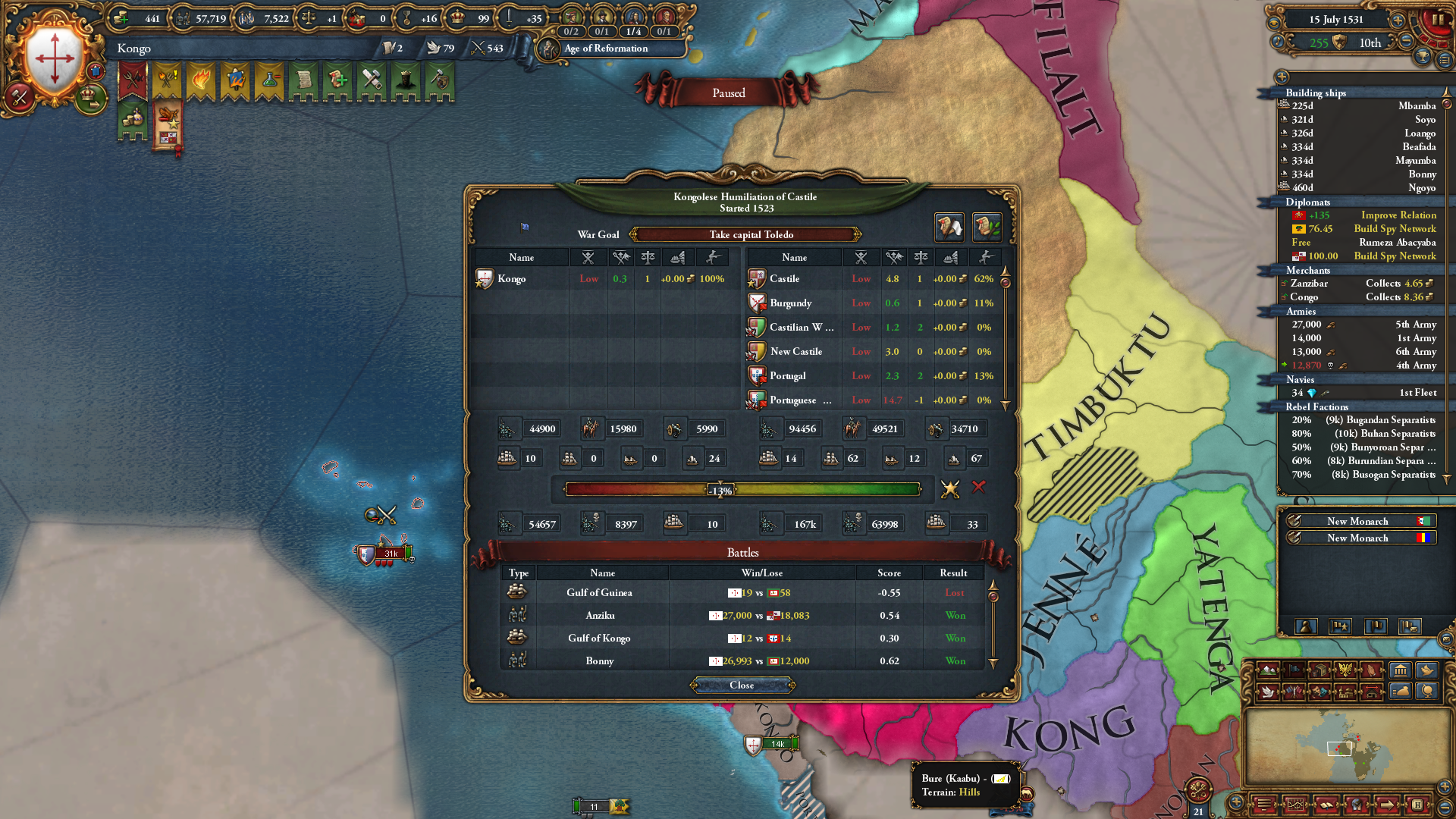 >>830767 >Зачем его убирать? Так ведь стартовая уния с Австрией без своего наследника. >Она всегда действует, только если стать жесткими врагами придет ивент на её отмену В катках за Венгрию обычно прекращается по ивенту, если вместо падения в унию выбрать Матьяша. >Со страной можно не делиться по миру, если много траста Как? Вроде при мирном договоре деньги сами собой распределяются между участниками, других опций не видел >увеличивает, обычно с хотя бы одной поддержкой всегда выше 50% желание. Иногда бот сам мирно отпускает вассала или униата, если слишком много поддержали. Так за Голландию можно без войны получить независимость от Бурги. Интересно, как можно спровоцировать ИИ помогать игроку обретать независимость? Если Венгрией выбрать австрийского кандидата, то Хорватия бесплатно аннексится сразу с корами...