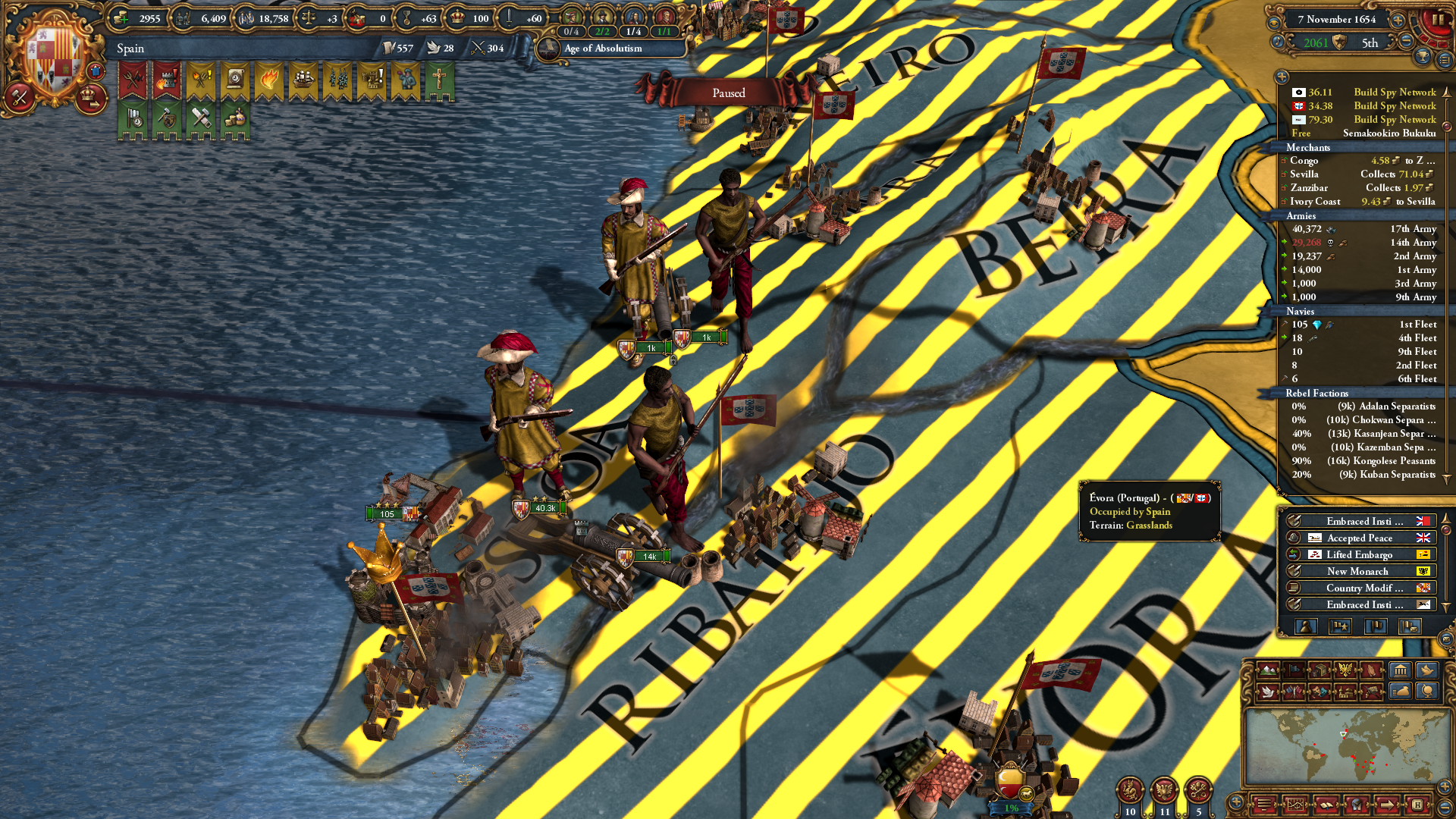 >Как? Думал ты про земли. Деньги делятся пропорционально вкладу в войне, его в окне войны пишут. Если страна не воевала, то и получит 1%.