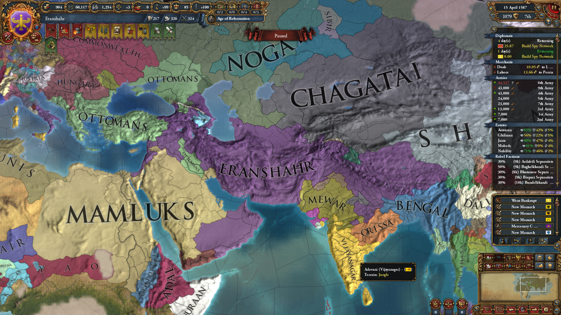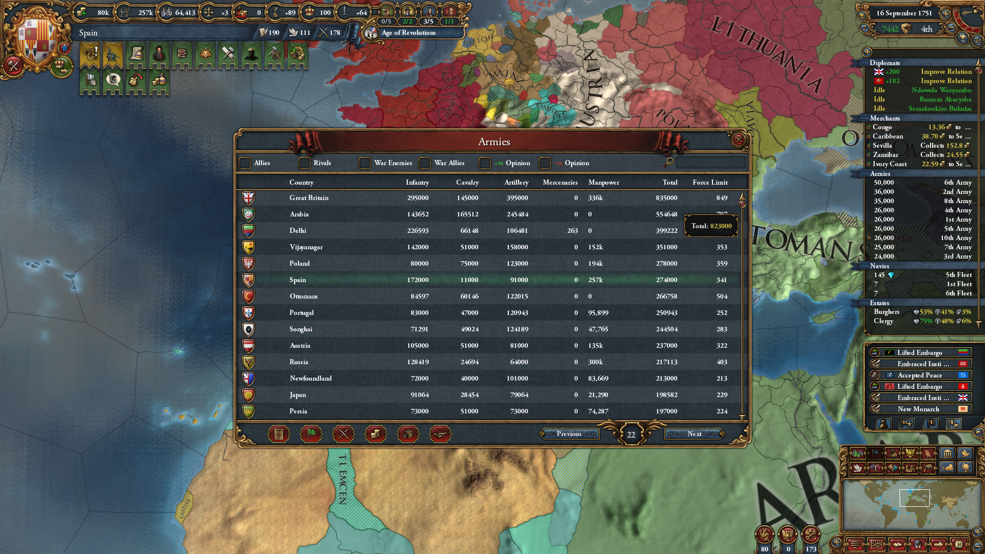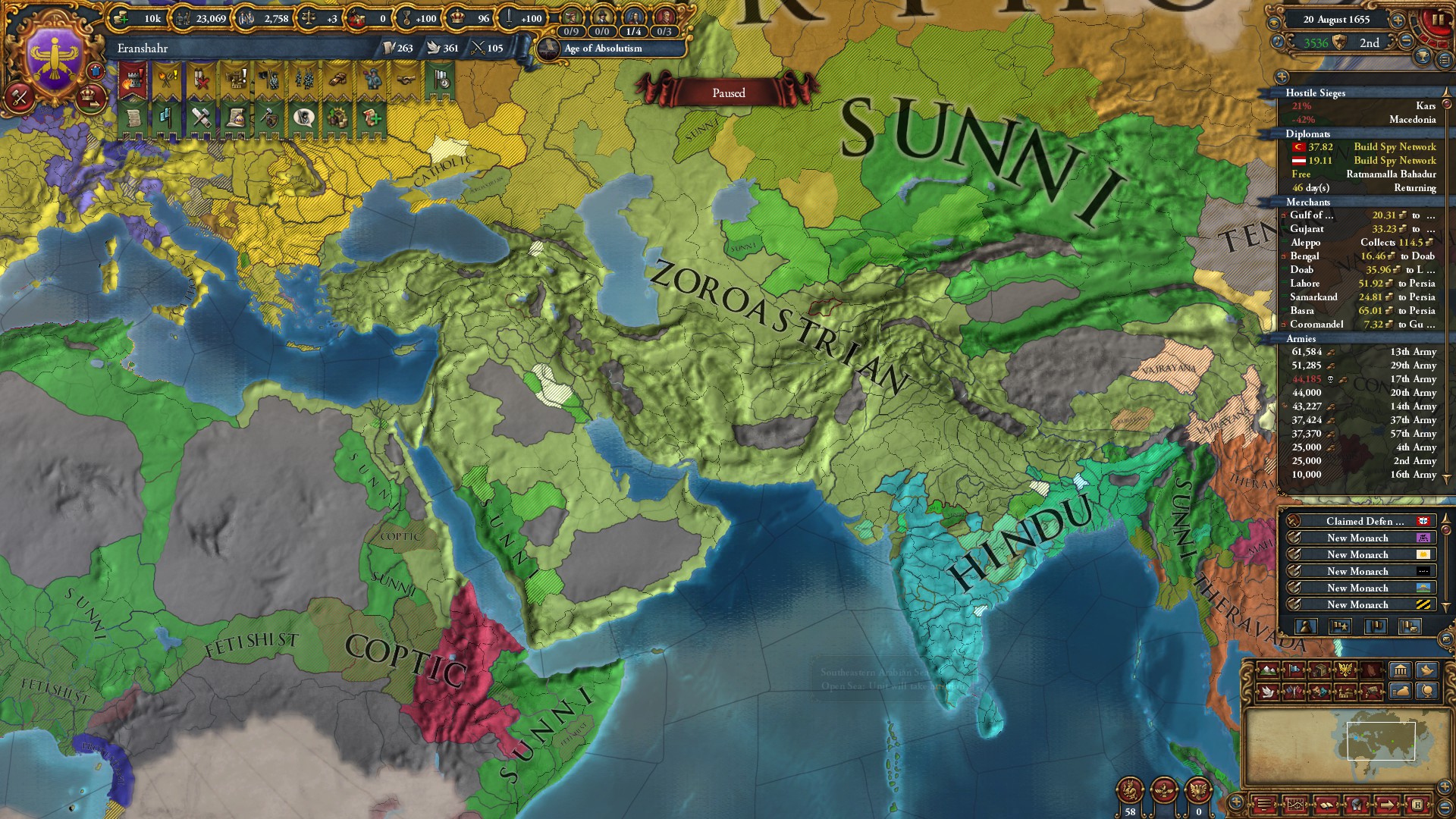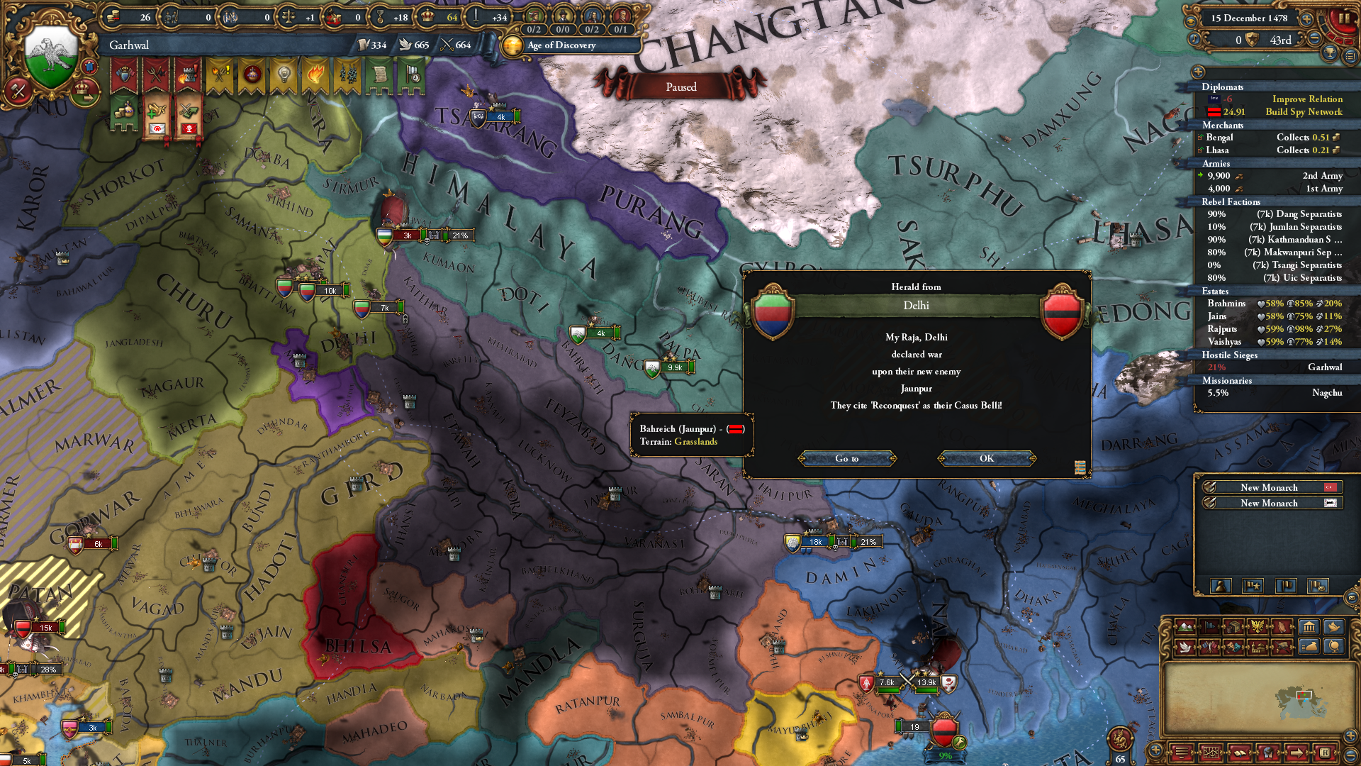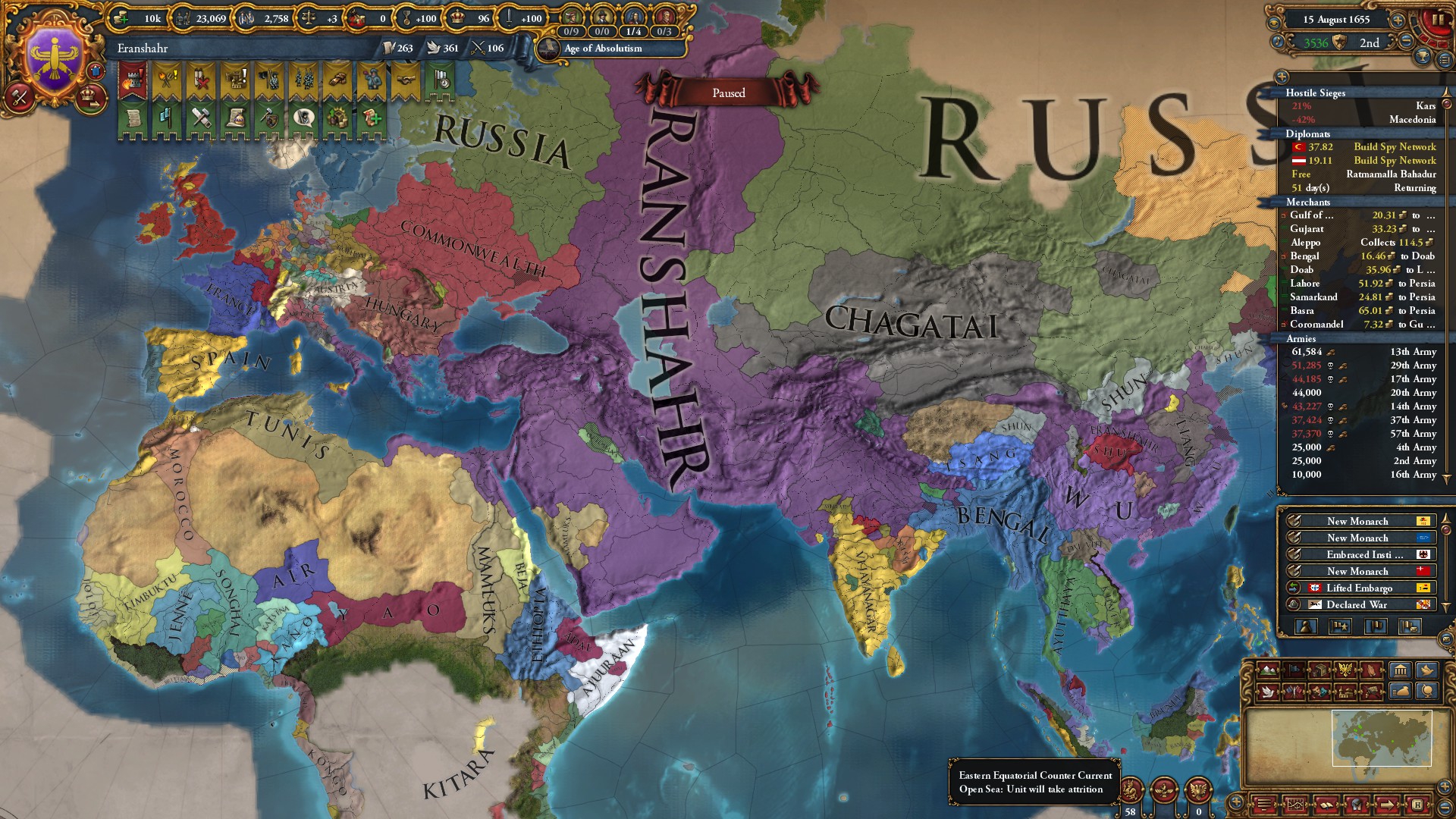 Знатно обогатились за счёт осман на ~650 монет у каждого... В этот раз я забыл убрать апостолическое королевство, но унии тем не менее избежал. Видимо избрание Матьяша королём заскриптовано. Вики пишет, что он был первым ренессансным правителем восточной Европы, покровителем художников и архитекторов... Хотел быстро развести Австрию на войну с Венецией, пока действует историческая дружба, но успел их использовать только против осман. Пока мы ещё в союзе, но из совместных войн они уже начали выходить (зато это позволило не делиться с ними по договору). Нашёл, что на пик 2 отображается, кто поддерживает независимость вассалам. Вот только непонятно, увеличивает ли поддержка "желание независимости" или нет. Если отношения с вассалом выше -25, то поддержать независимость якобы нельзя.