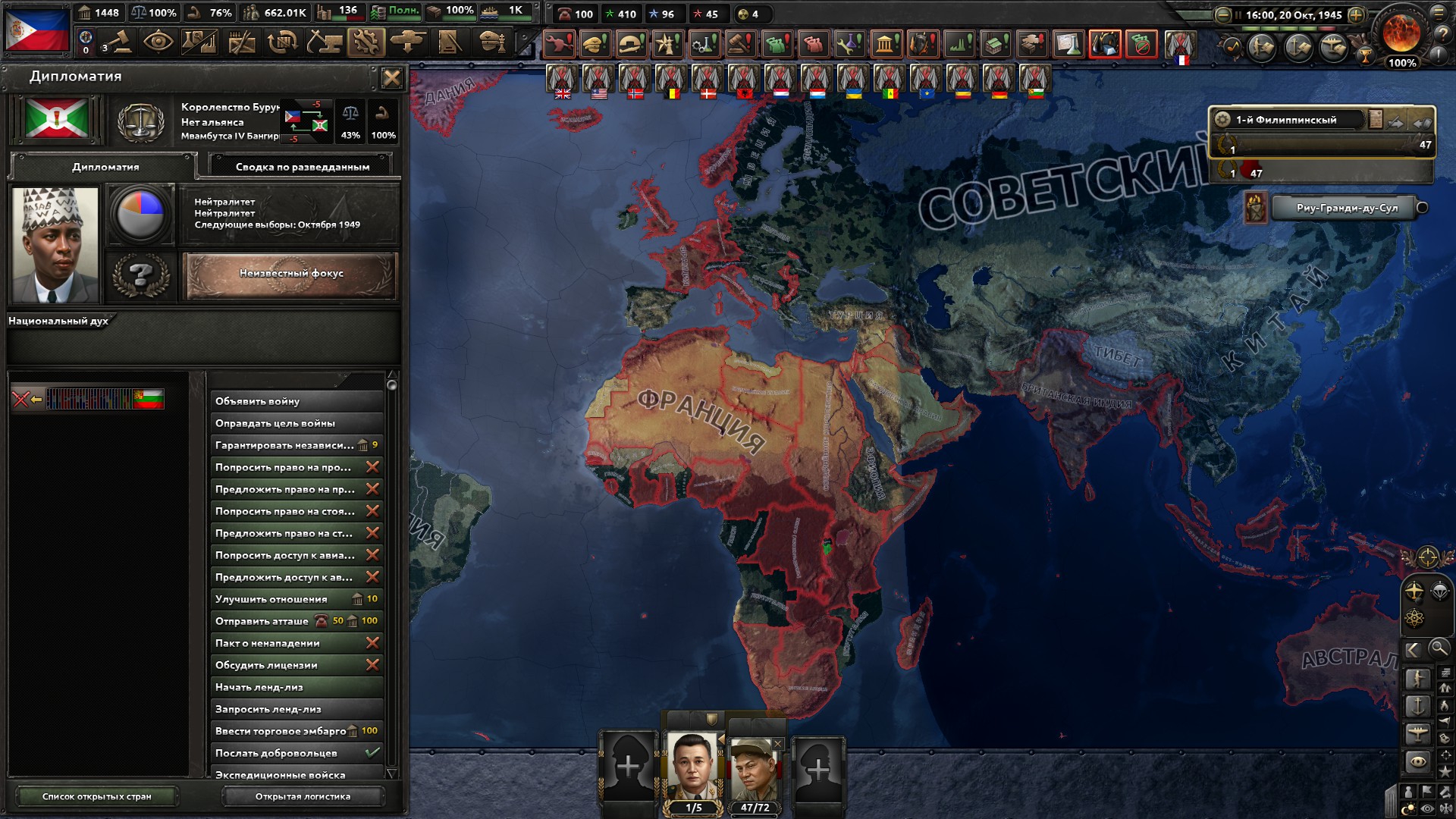 > пока действует историческая дружба, Она всегда действует, только если стать жесткими врагами придет ивент на её отмену. Выходят из войн если оккупировали страну, либо по белому если война супер долго идет. Со страной можно не делиться по миру, если много траста, траст можно за фаворсы обменивать, главное выше 50 держать.