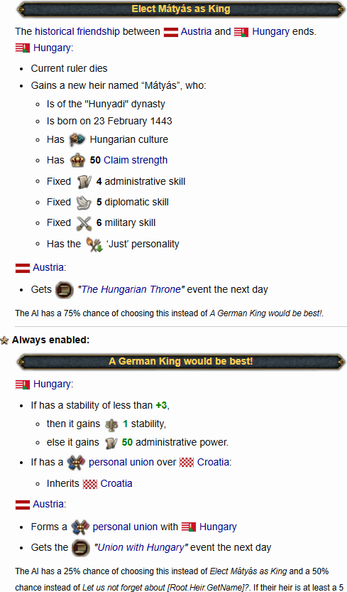 >>830769 >Так ведь стартовая уния с Австрией без своего наследника. И как она с формой правления связана? В ивенте у опции на Матьяша нет условий никаких.