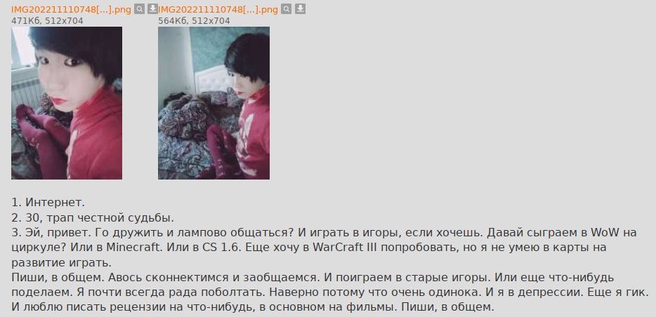 >к 30+ устроены в жизни, нормально социализированы и состоят в стабильных отношениях, ну или им уже нафик не упало есть говно искать родственную душу в соц/на сз/хз Всё так. Да, устроены, да социализированы, да я им нафиг не нужен. Блэкпилл. Других вариантов нет. О чём и был пост выше.