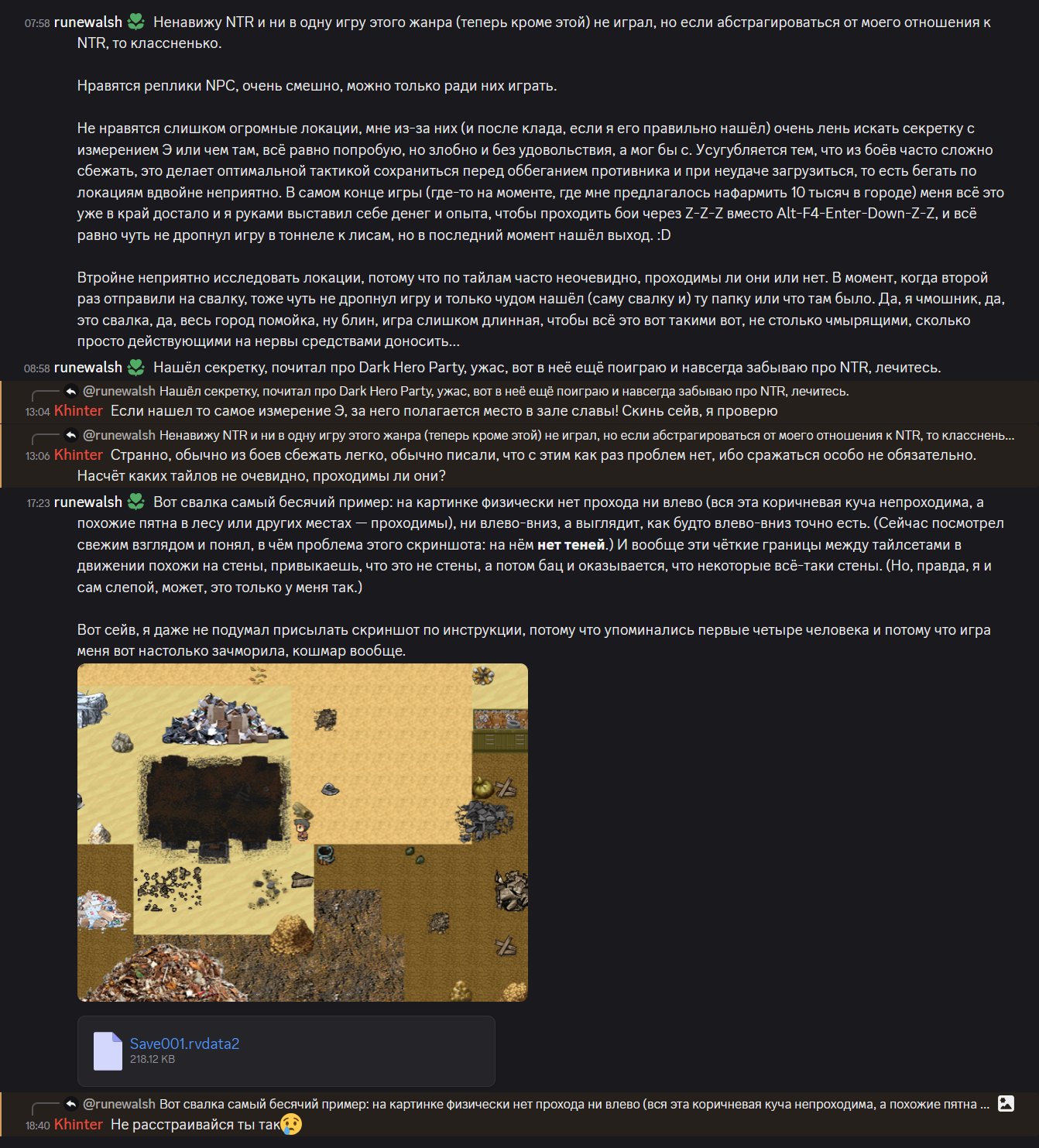 Залип в Героев четвёртых. Почти прошёл кампанию за Жызнь. Осталось попустить этого Вротана. Тоже на максимальной сложности. На предыдущей карте нужно было пройти через толпу элементалей, водяные + земляные. Думал что всё, софтлок. Такие многоходовочки пришлось проворачивать, что Главнокомандующий позавидует. Водяные элементали в первом ходу убивают спелом половину героев (которых нельзя терять), на втором убивают оставшихся. У меня был друид который мог элементалей в отряд призывал. Нароллил чтобы были земляные (у них шанс на игнор магии). В первом ходу закрыл героя отрядом этих элементалей, во втором кастанул на героя Антимагию и потом захуярил всех через призывание + усиление стрелковых юнитов и зыбучие пески. В очередной раз пожалел, что у меня не сохранилась та самодельная карта для бесконечного аутирования, на которой есть все фракции и продуманный баланс. Если сейчас возьмусь новую пилить на таком же уровне, то это на недели затянется.