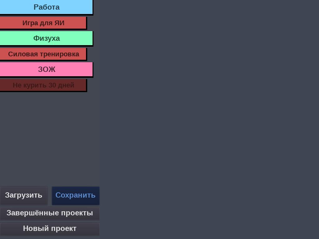 Доброе утро, дорогие друзья. Хотя сейчас уже не утро, да и не друзья вы мне. Я опять изменил план. Не удивляйтесь. Вместо шести часов в день + отдых через день, что в среднем равняется трём часам в день (которых мало), теперь будет 40 часов на неделю. То есть не обязательно укладываться в 8 часов за сутки, нужно чтобы за неделю в сумме получилось 40. Или 30. Потом откалибрую, начну с 40. Ну и физуха остаётся, куда ж без неё. С понедельника запираюсь, пока не отработаю 40 часов.