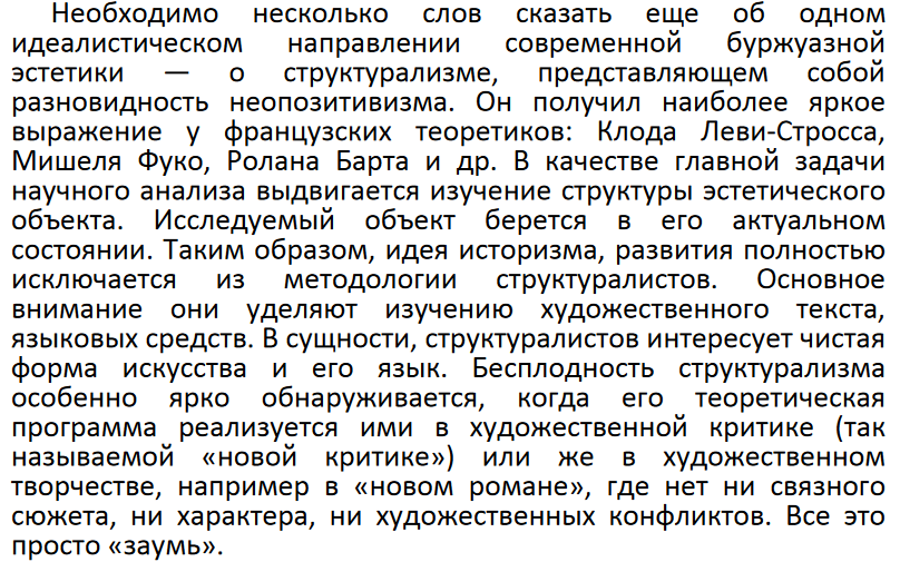 Культура это форма общественного сознания, неразрывно связанная с классовой позицией и борьбой, ключевыми категориями которой являются партийность(идейность) и народность. Представление о неиерархичности будущего утопично по той причине, что не показывает путь его достижения через революционное низвержение господствующих идей, в том числе абстрактно-гуманистических, которые на деле маскируют реальные эксплуататорские отношения. В эстетике марксизма гуманизм приобретает реальное содержание только тогда, когда он становится на сторону угнетённого класса, а абстрактная любовь к человеку размывает идею солидарности трудящихся, подменяя её внеисторическим и аполитичным общечеловеческим подходом, который на практике всегда служит интересам господствующего класса. Любой образ будущего, который конструируется из моральных пожеланий, а не диалектического понимания истории и научного анализа — является утопией, и выражением буржуазного либерального гуманизма, который в марксизме критикуется за скрытую апологию существующего строя через подмену конкретной классовой борьбы абстрактными моральными категориями.