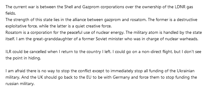Политическое беженство подразумевает собой предоставление защиты при условиях государственного либо частного преследования, которое имеет под собой угрозу жизни человека. Если защита предоставляется сугубо формально, через эквивалент гражданских прав - окей, человек с ясным умом с этим разберётся, но когда полиция вместо того чтобы разоблачать преступников(я ещё 30 сентября 2024 написала заявление) занимается тем, что выдвигает обвинения к потерпевшим(как это было со мной в июле), то мне ничего и не остаётся кроме как двигаться дальше, и это ещё хорошо что мне есть куда - потому что дело против меня со стороны ФСБ является полностью сфабрикованным, а сама я никогда не вела активную антигосударственную деятельность, и под маховик репрессий я попала просто потому что вышла погулять не в то время и не в то место, что и было записано в моём объяснении полиции в 2014 году.
