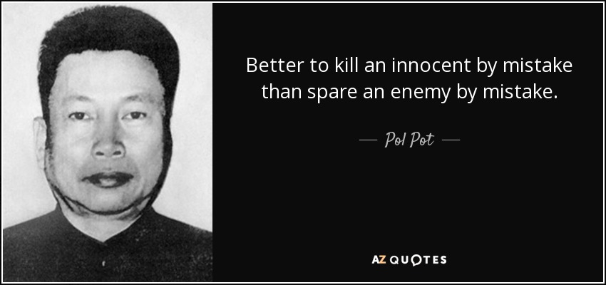 У нас есть знание о том как правильно организовать общество, но само общество этого не хочет. Был умнейший человек - Пол Пот, который выдвинул абсолютно верный тезис: если интеллегенция обладает политическим мнением отличным от партии, то террор в отношение неё оправдан. Все те знания, которые накоплены в головах этих людей, абсолютно бесполезны, потому что используются они лишь ради интеллигентского чванства и самовозвышения над необразованными массами, которым не повезло с родителями и у которых не было доступа к высшему образованию. Заниматься производительным интеллектуальным трудом эти люди не хотят и никогда не будут - им интересен управленческий труд, который возникает из разницы в компетенции между ними и массами, формируя интеллектуальную иерархическую систему.