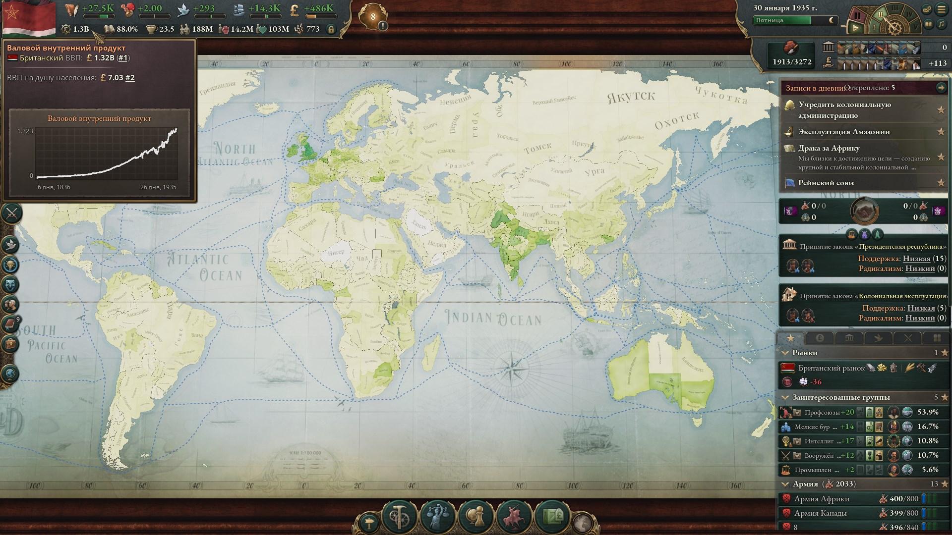 Валютный курс это косвенный индикатор стоимости рабочей силы. Рабочее время и производительность труда не изменяется, но стоимость труда в валютном эквиваленте падает, и эта валютная выручка направляется на финансирование классовых интересов крупной буржуазии, которая вместо того чтобы закончить войну в течение короткого срока, как можно дольше продлевала этот процесс, проводя концентрацию капитала, поглощая международный капитал, созданный в предвоенную эпоху и распределённый между менее реакционными социальными классами. Затем, в процессе горячей фазы войны, произошло физическое устранение более чем десяти собственников крупного капитала, и консолидация их активов в руках государства. Т.е. процесс монополизации происходит с ускорением, что упрощает общую экспроприацию промышленности в будущем.