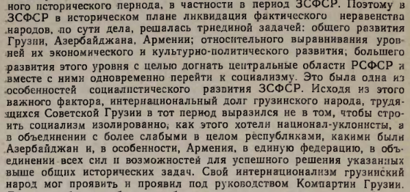 Совершенно очевидно что по мере возрождения сталинизма будет оказываться давление на грузинский народ, как это было после смерти Сталина: Грузия первая приняла на себя удар ревизионизма, и стояла до последнего. Сломать её удалось только в 1989 году, когда Горбачёв, понимая что у партии отсутствуют интеллектуальные ресурсы для закрепления вполне справедливого избиения демократов лопатами, отказался брать на себя ответственность за действия армии - им двигал даже не сколько личный страх, сколько понимание того что так будет ещё хуже: было совершенно не понятно как строить коммунизм, и даже не понятно что за социализм уже был построен, что за страна была такая СССР - как она вообще функционирует, на каких принципах основана, зачем нужна и каким образом добивается своих целей.