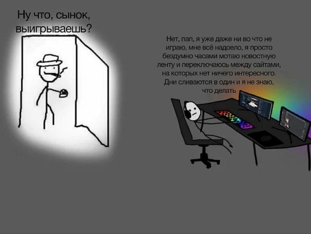 Просто у меня банально нет времени на все эти разборки, потому что я занята саморазвитием и научными исследованиями - благо в современности для этого достаточно иметь ПК и отдельное жильё, где никто не мешает.