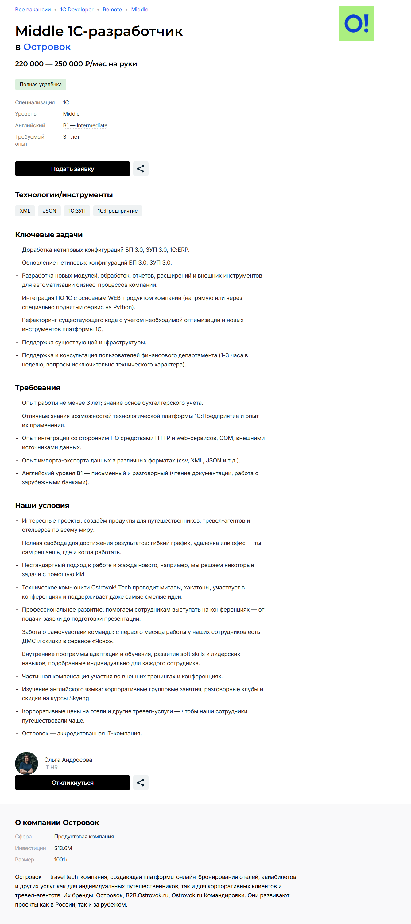 Кстати, вот для примера вакансия на удалёнке в 1С. И это они пишут middle грейд. Что уж говорить про ОПСОСов и финтех? В том же Модульбанке есть вакансия middle 1С программист на полной удалёнке с зп 140-160к. И требования там не сказать, чтобы нереалистичные. А откликов всего 25 за 2 недели. В каком-нибудь пхп или шарпе или девопс было бы 150-300 конкурентов за это время. Кмк на такую хорошую зп за годик легко вкатиться. Ну, первый год я согласен работать за 80к, если это норм компания и инхаус, где юзают EDT и современные практики.