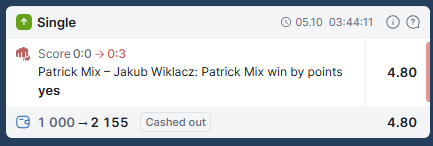 Потерял 13к, угадал тока с одним андердогом-Фиги, угадал хорошо, но поставил немного. Упустил возможность поставить на Чарльза, не знаю почему, сожаления по поводу тоже не чувствую. Странно. Не упустил возможности занести живую на Петрино на достаточно неплохо каэф на фоне того, что он побеждал в одну калитку, но из-за природной острожности занёс мало, я тока через секунду подумал, что надо занести ещё тонн 40 и линия резко поменялась назад. Тупанул. Питрино ещё дико меня подвёл с финишем в третьем, он мог финишировать и в первом и во втором но потому что дебил, он продолжал вместо добивания переть за одиночкой. Не знаю нахуя, всё что он выбрасывал по Питерсону залетало с первой секунды. В целом у меня хорошее настроение, учитывая, что я по пикам угадал МЕНЬШЕ ПОЛОВИНЫ КАРДА 13к выглядят не так уж и плохо. Кард на следующей неделе выглядит просто отлично.