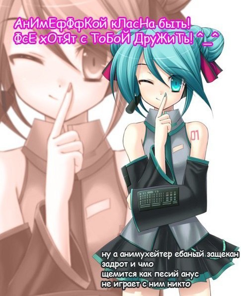 А мой, как ты изволил выражаться, дегенеративный дружок из конфы, и как я робко добавлял: «...угу, с работой, девушкой, жильём, и ребёнком», тогда написал пик 2, то есть мягко намекнул, что какого бы мнения он ни был о торчах, а я всё же чуть попутал и конкретная реакция торча тоже понимаема. Вот тебе, я думаю, не хватает /-ло по жизни адекватной обратной связи (не безусловного заглядывания в рот или безусловного хейта), попутал ты или нет.