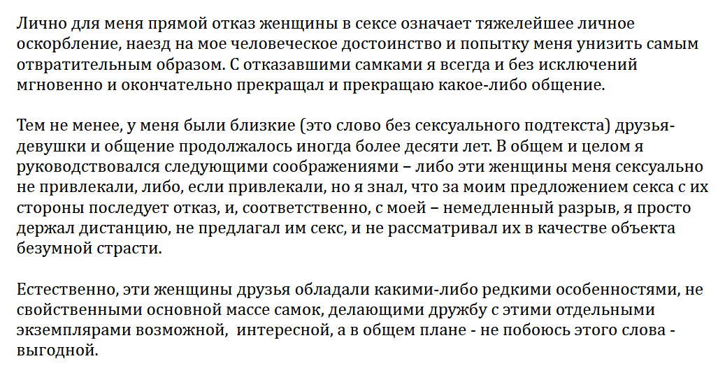 Высраться на рядовое смешное видео с птичкой, прыгающей на резиновом члене двумя лапками, как Юми двумя руками держа_л настоящий, что ебать ты больной что ли такое присылать, сам ты говно по жизни, и дружу я с тобой, потому что у меня выбора нет (— «Чувак, я это считаю оскорблением». — «Ладно, мне просто от закона про трансгендеров пригорело»), само по себе неправильно. Даже если пять минут назад твою семью убили, дом сожгли, тебя самого изнасиловали, напоследок оттяпали руки и ноги, кроме одной, которой ты и хочешь выразить, как тебе неприятно быть в такой ситуации (мне просто такая аналогия понятнее, чем закон про трансгендеров), ну обосри ты НЕ того человека, которому пишешь, а, к примеру, тех, кто это сделал.