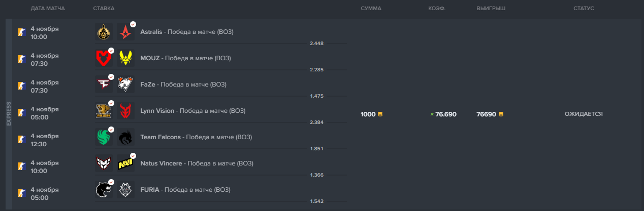 сделал первый депозит утром, остатки с него в экспрессе ещё висят. сейчас сделал второй вдогонку, чтоб время не терять. его чуть раскручу и фулл выведу бабос, потому что к тому времени уже экпресс зайдет.
