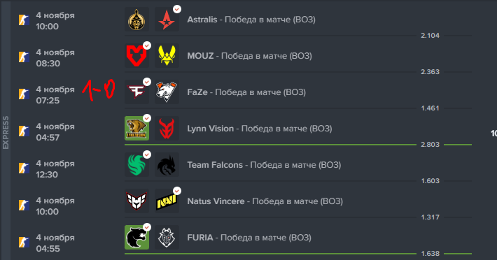совсем не уверен что Фальконы должны быть фаворитами в матче со Спиритами, хотя разница кэфов совсем небольшая. Мышь может побить пчеликов, но та же проблема что и выше. Вообще, кэфы на завтра довольно ровные, а сегодня вроде все фавориты кроме Нави победили.