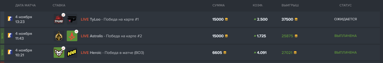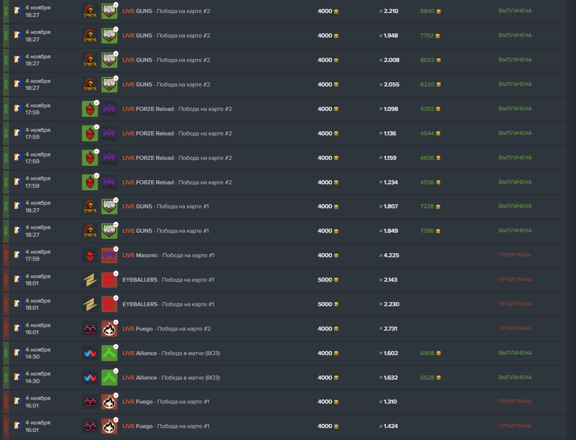 вчера не удержался, начал ставить на тир3 турниры с призовыми 2к$. все матчи со скрина (кроме Forze) были откровенным договорняком. Fuego, EYEBALLERS и особенно SPARTA