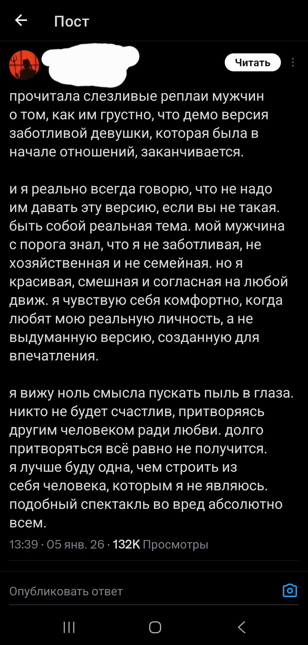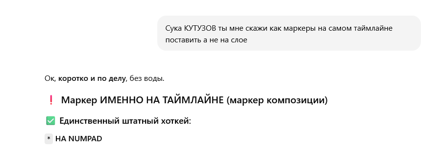 Ну и ты в этом плане как будто не особо гибкий чел. Ну тип, как будто для тебя принципиально до конца стоять на своей точке зрения, даже если она неприятная твоему оппоненту. Мож из-за этого у вас так все и сложилось, не знаю